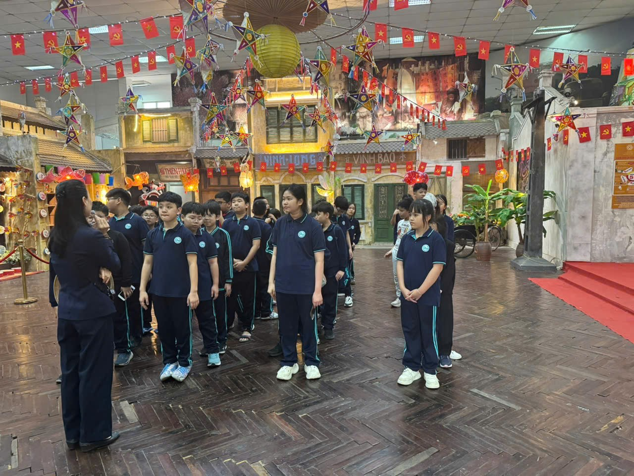 Buổi chiều, hành trình đưa các em đến Bảo tàng Lịch sử Quốc gia – nơi lưu giữ kho tàng di sản lịch sử Việt Nam. Tại đây, học sinh được chiêm ngưỡng những hiện vật từ thời nguyên thủy đến các triều đại phong kiến, được nghe kể những câu chuyện về truyền thống đấu tranh và sáng tạo của dân tộc. Mỗi hiện vật như một cánh cửa dẫn các em trở về với quá khứ, để niềm tự hào dân tộc càng thêm sâu sắc. Bạn Thu Nga chia sẻ “Khi đứng trước những hiện vật cổ, em thấy như được sống trong lịch sử. Em hiểu rằng để có đất nước hôm nay, ông cha ta đã phải hi sinh rất nhiều. Em sẽ cố gắng học giỏi để xứng đáng với các thế hệ đi trước.”