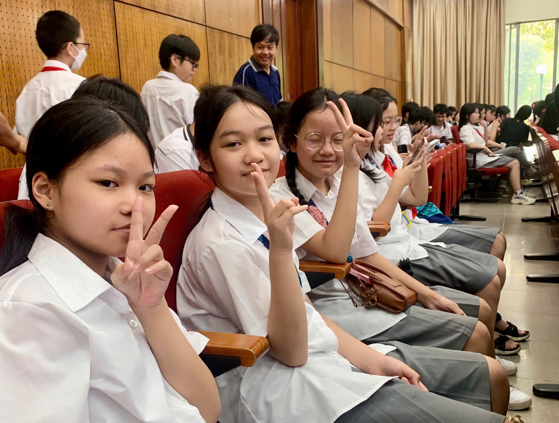 Sau khi có mặt tại trường Đại học Bách khoa Hà Nội, các bạn được vào nghe hội thảo giới thiệu về vai trò của trí tuệ nhân tạo trong kỷ nguyên công nghệ, nơi các chuyên gia chia sẻ những ứng dụng gần gũi của AI trong học tập và đời sống. Qua những ví dụ sinh động, các bạn học sinh nhận ra rằng AI không chỉ là công cụ hỗ trợ, mà còn là người bạn đồng hành giúp con người sáng tạo và phát triển tốt hơn trong tương lai.