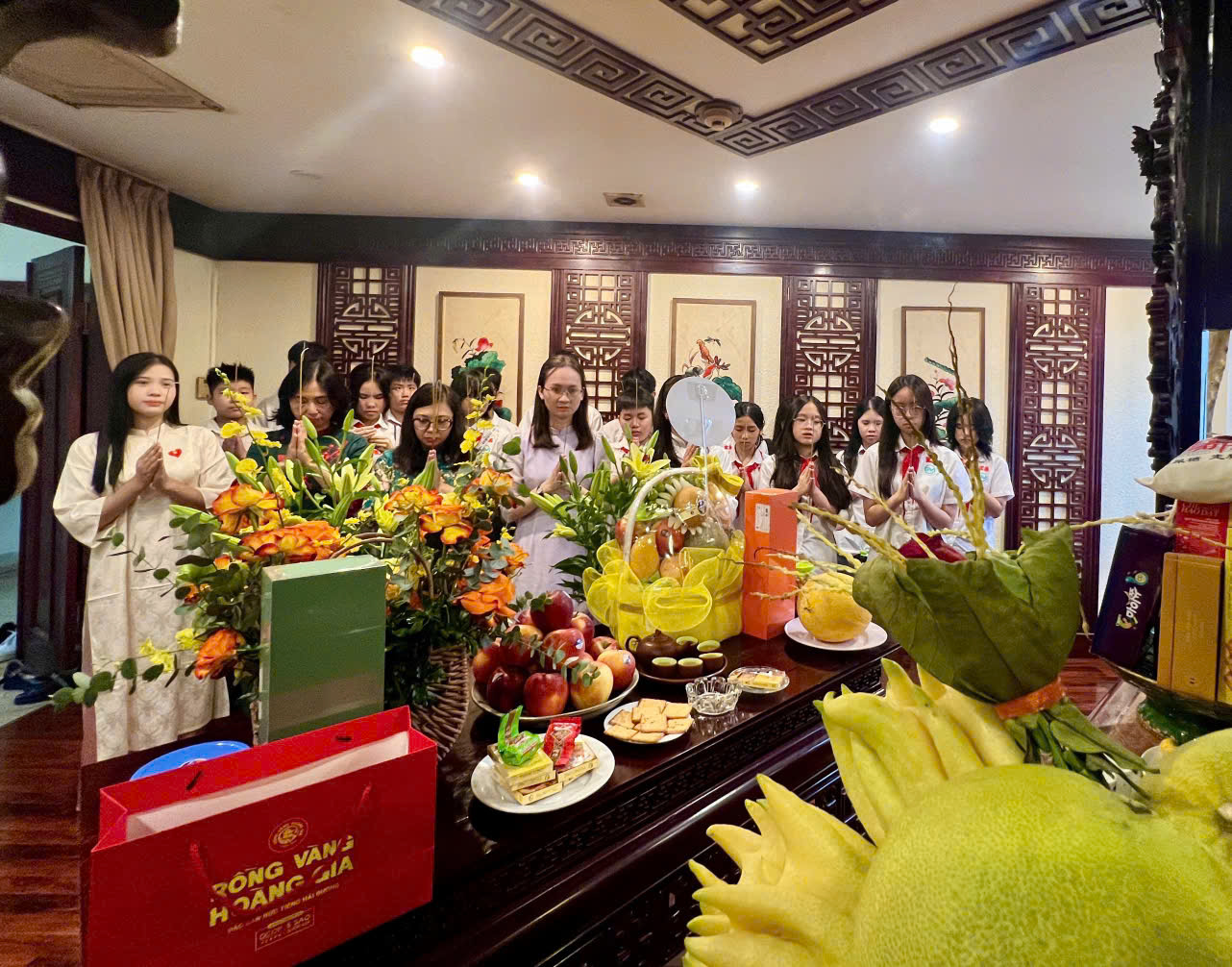 Ngay sau lễ khai mạc, các thầy cô và học sinh đã dâng hương tưởng niệm Chủ tịch Hồ Chí Minh trong không gian trang nghiêm, thành kính. Khoảnh khắc ấy đã để lại trong lòng thầy và trò những xúc cảm sâu lắng, khi được hướng lòng về vị lãnh tụ kính yêu – người đã hiến dâng trọn đời cho độc lập, tự do của dân tộc.