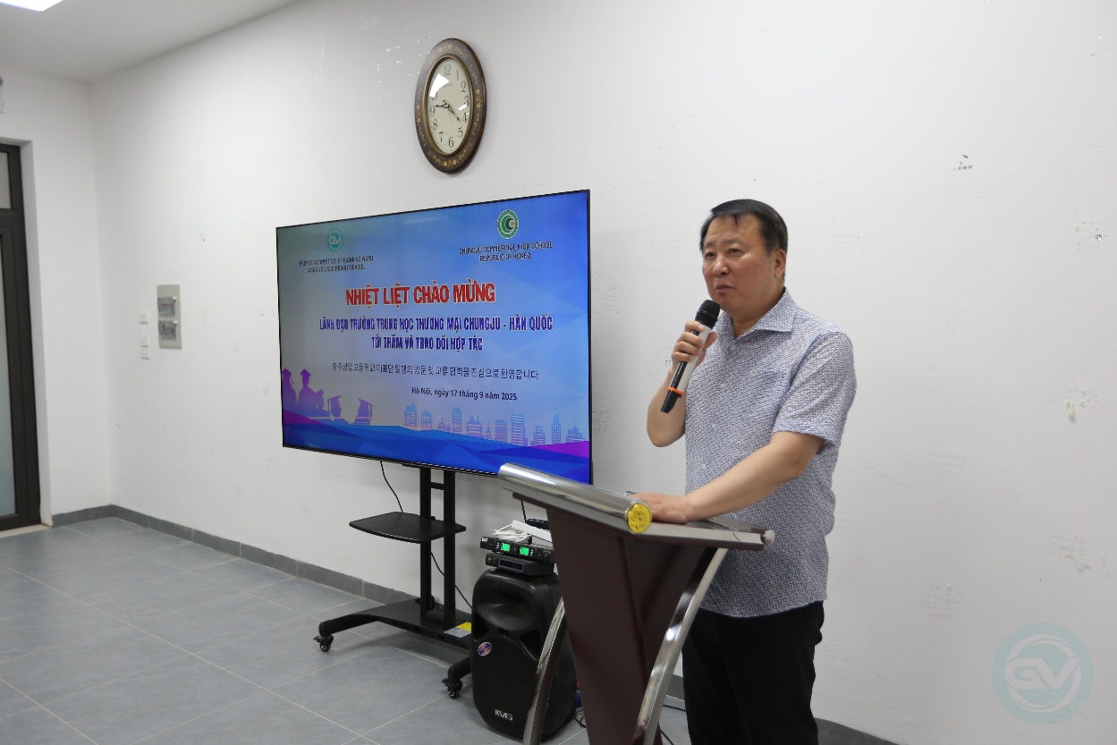 Về phía đoàn bạn, ông Park Jong Sik gửi lời cảm ơn về sự đón tiếp nồng hậu và giới thiệu mô hình giáo dục của Trường Chungju – nơi kết hợp chương trình trung học phổ thông với học nghề, giúp học sinh vừa học văn hóa vừa có kỹ năng nghề nghiệp, được miễn học phí và có cơ hội xin việc hoặc thi tuyển viên chức tại các cơ quan, tổ chức Hàn Quốc. Đồng thời ông Park Jong Sik cũng bày tỏ hy vọng trong tương lai, học sinh cấp THCS tại Việt Nam nói chung, trường THCS Giảng Võ 2 nói riêng có thể tham gia theo học tại trường Trung học Thương mại Chungju.