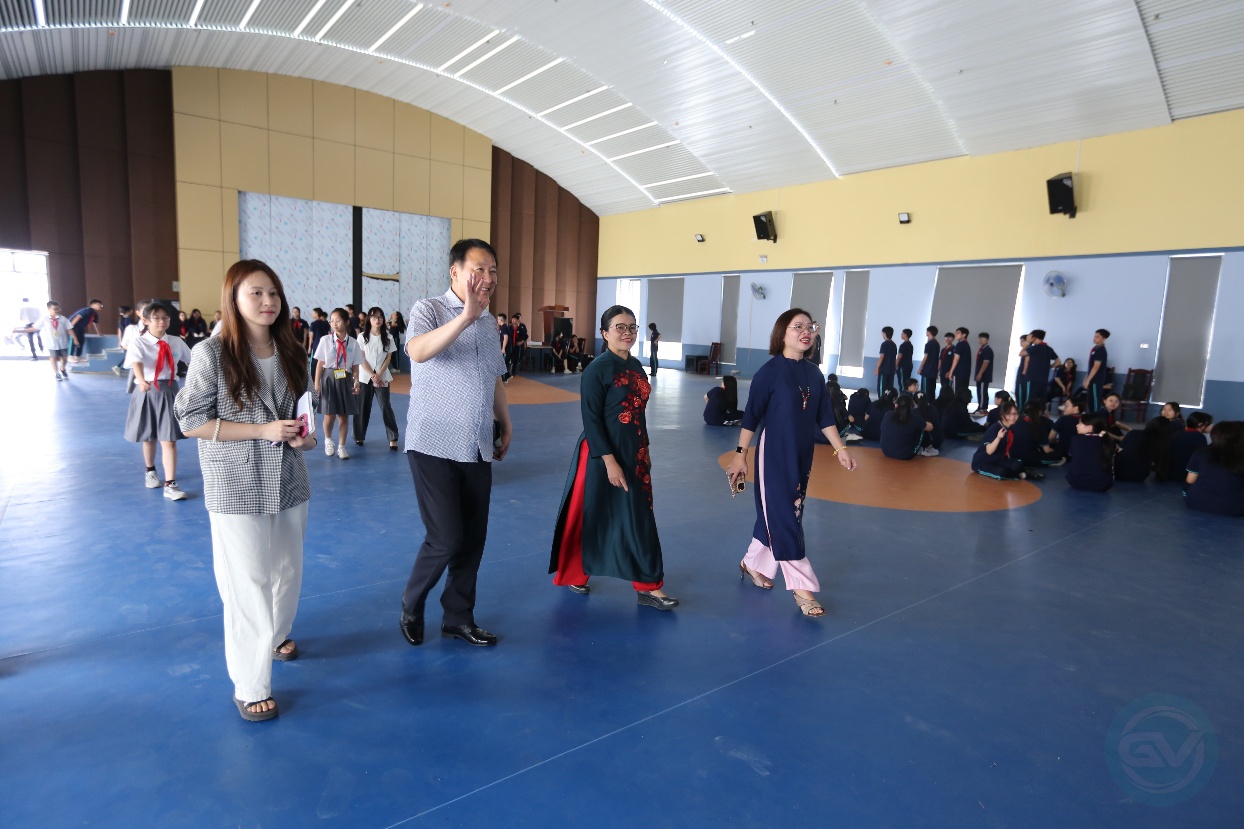 Đáp lễ, nhà giáo Phạm Thị Hương Giang - Hiệu trưởng Trường THCS Giảng Võ 2 đã trực tiếp dẫn đoàn công tác tham quan cơ sở vật chất hiện đại của nhà trường, cũng như đưa ra những gợi ý về hướng hợp tác có triển vọng dựa trên cơ sở vật chất hoàn thiện của hai nhà trường trong tương lai.