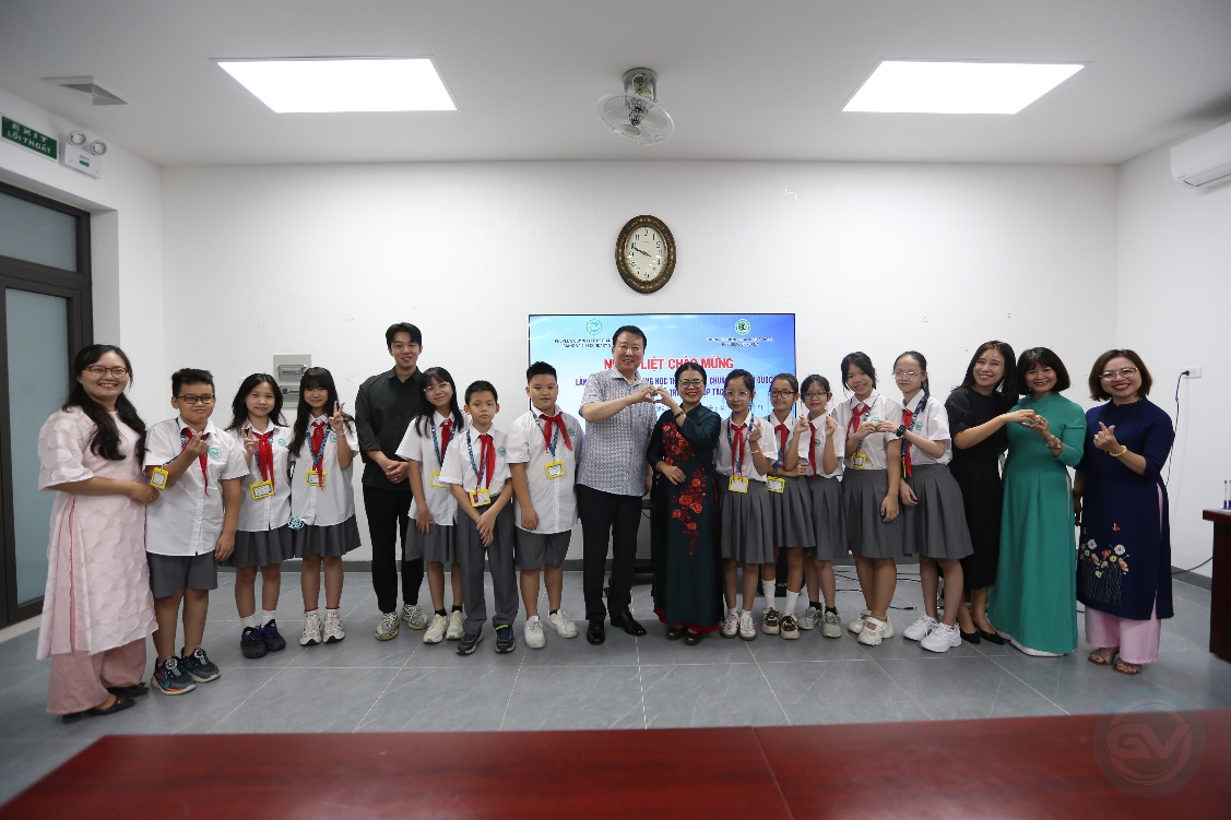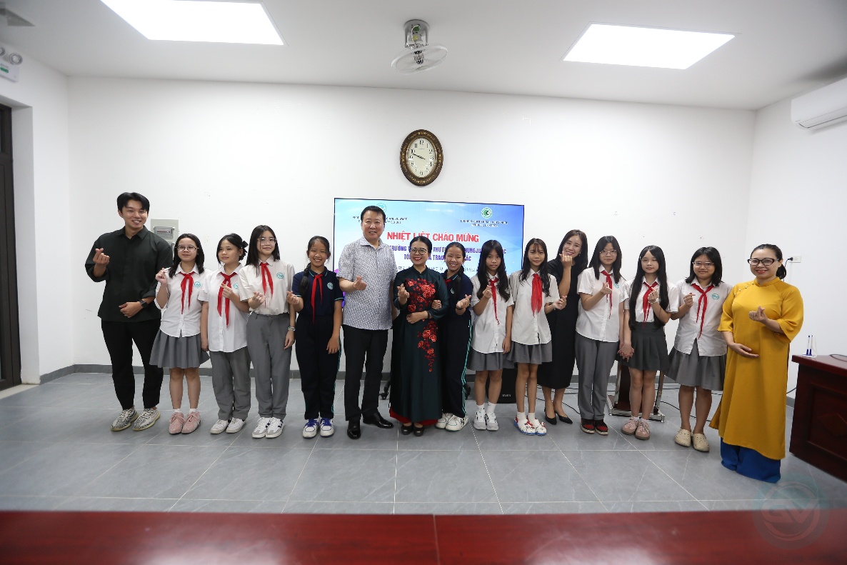 Tham dự buổi tiếp đón, trường THCS Giảng Võ 2 có Nhà giáo Phạm Thị Hương Giang – Hiệu trưởng nhà trường cùng toàn thể Ban Giám hiệu, tổ ngoại ngữ, giáo viên chủ nhiệm và học sinh các lớp học tiếng Hàn quốc.