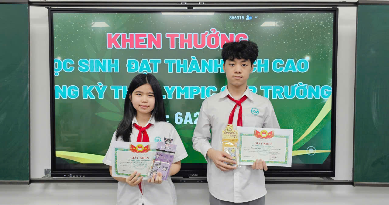 Thảo Linh và Anh Huy đạt giải Nhì môn Tiếng Anh tại Kỳ thi Olympic các môn văn hóa cấp trường.