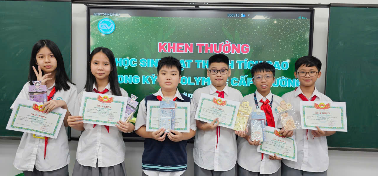 Đặc biệt, bạn Quốc Vinh đã xuất sắc giành giải Nhất môn Khoa học tự nhiên với số điểm 16,00, đây cũng là giải Nhất duy nhất của toàn khối 6 ở môn học này. Ở môn Tiếng Anh, bạn Khánh Chi đạt giải Nhất với số điểm 18,50, một kết quả rất ấn tượng tại kỳ thi năm nay. Bên cạnh đó, lớp còn có ba học sinh mạnh dạn tham gia thi môn Tin học lớp 7 (thi vượt cấp) và cả ba bạn đều đạt giải, thể hiện tinh thần ham học hỏi và sẵn sàng chinh phục những thử thách mới.