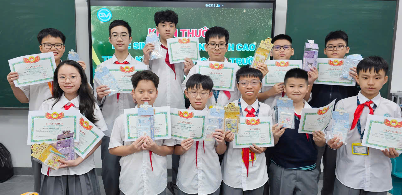 Trong buổi khen thưởng tại lớp, cô giáo chủ nhiệm đã gửi lời chúc mừng tới các bạn học sinh đạt giải và biểu dương tinh thần học tập của cả lớp. Những phần thưởng tuy giản dị nhưng là sự ghi nhận xứng đáng cho những nỗ lực của các em, đồng thời tiếp thêm động lực để mỗi thành viên trong lớp tiếp tục phấn đấu.