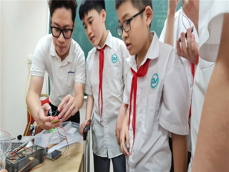 “Nhóm tớ lúc đầu làm mãi không sáng, nản lắm luôn. Nhưng sau khi thầy giúp với cả tụi tớ thử lại nhiều lần thì cũng sáng! Vui cực! Tớ nghĩ là thất bại cũng không sao, chỉ cần không bỏ cuộc là được!” – bạn Kỳ Phong chia sẻ rất thật lòng.
