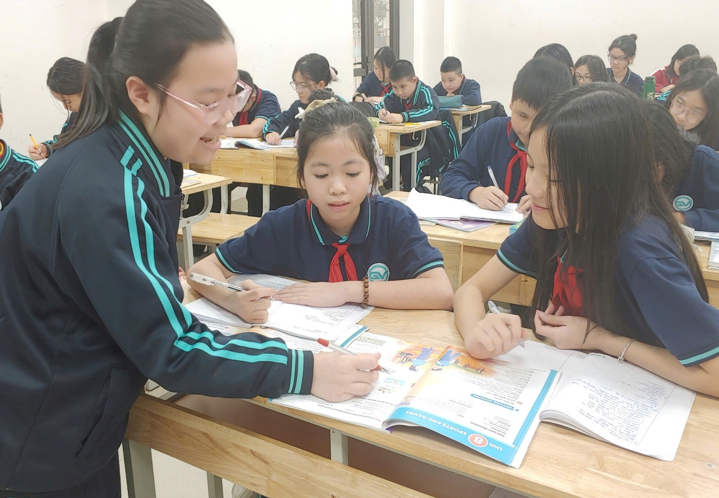 Đồng thời trong lớp học, tinh thần giúp đỡ lẫn nhau cũng luôn được đặt lên hàng đầu. Các bạn học giỏi tiếng Anh luôn sẵn sàng chia sẻ kinh nghiệm, giải thích bài tập khó và khích lệ các bạn học yếu mà không bao giờ phàn nàn. Chính tinh thần đoàn kết ấy đã trở thành chìa khóa mở ra cánh cửa thành công trong học tập của lớp chúng em. Bạn Bảo An và bạn Anh Đan đã chia sẻ rằng: “Nhờ bạn Nguyễn Phạm Bảo Anh mà chúng em đã cải thiện khá nhiều về vốn từ vựng và ngữ pháp và phát âm. Chúng em sẽ luôn hỗ trợ nhau giải những bài tập khó và khiến mỗi buổi học trở nên thú vị hơn. Sau mỗi học, bọn em đều chia sẻ những mẹo học tập mới mẻ và cùng đặt mục tiêu cho lần sau.”