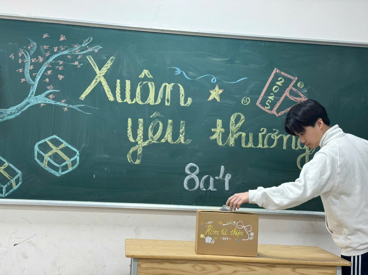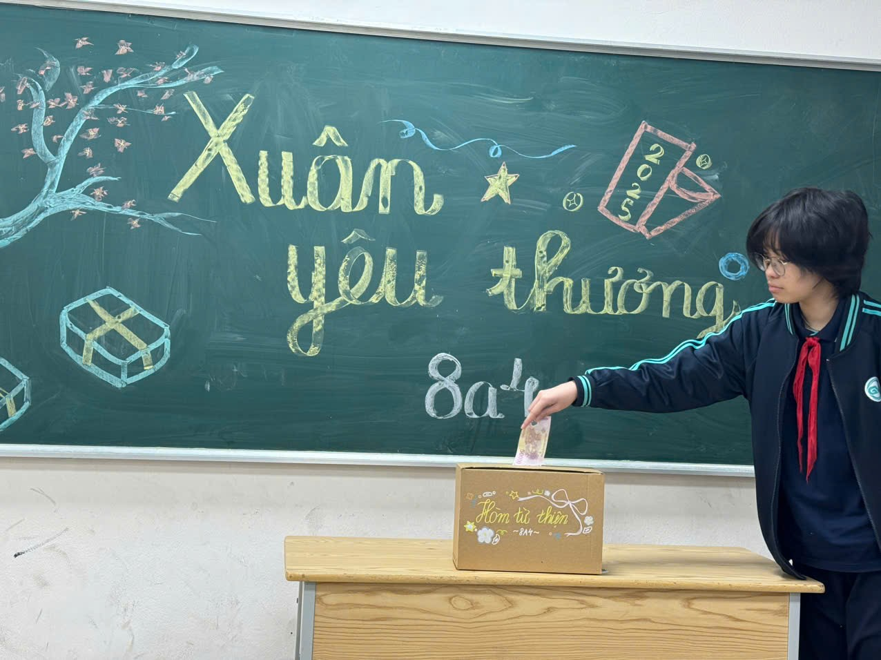 Sau khi tổng kết số tiền quyên góp, cô Thu Trang – giáo viên chủ nhiệm lớp 8A4 – đã đại diện cả lớp gửi vào hòm quỹ từ thiện của nhà trường. Số tiền tuy không lớn, nhưng đó là tấm lòng của lớp với mong muốn góp một phần nhỏ mang đến một mùa xuân ấm áp cho những hoàn cảnh còn gặp khó khăn