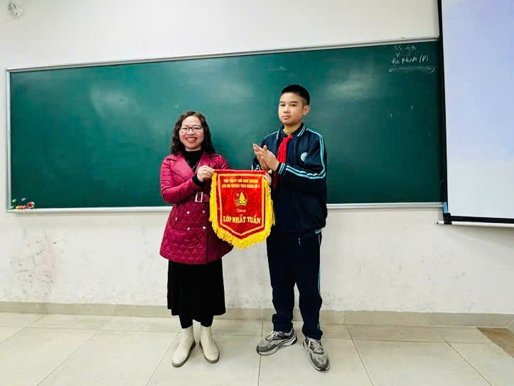 Tuần học vừa qua, tiết sinh hoạt lớp 8A4 thật ý nghĩa. Mở đầu giờ học là phần trao cờ thi đua cho lớp có thành tích xuất sắc nhất tuần. Tập thể lớp đã vinh dự được cô phó hiệu trưởng - Phạm Thị Mai Hoa và thầy phó tổng phụ trách - Đỗ Duy Dũng tới trao cờ. Đây không chỉ là phần thưởng cho sự nỗ lực của cả lớp mà còn là động lực giúp cá nhân các bạn học sinh tiếp tục cố gắng hơn. Dù đôi khi còn mắc khuyết điểm nhưng tyanhf tích đó giúp cả tập thể lớp thêm động lực, gắn bó, đoàn kết hơn.