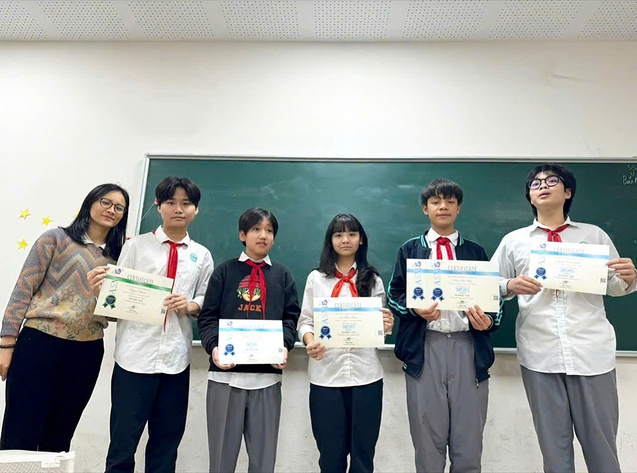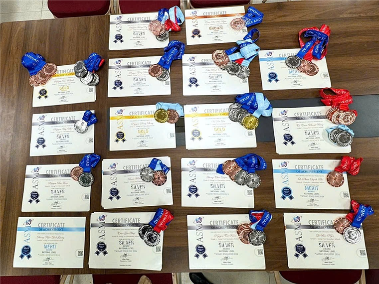 Không chỉ có vậy, cô giáo chủ nhiệm vinh danh những học sinh của lớp có thành tích tiêu biểu trong các kỳ thi ASMO và TIMO. Mỗi cá nhân sẽ được trao huy chương và giấy khen, những phần thưởng xứng đáng cho sự nỗ lực không mệt mỏi và kết quả đáng tự hào của các bạn. Đây là minh chứng rõ ràng cho sự chăm chỉ, kiên trì và quyết tâm vươn lên trong học tập - những phẩm chất đáng trân trọng và là tấm gương để các bạn cùng lớp noi theo.