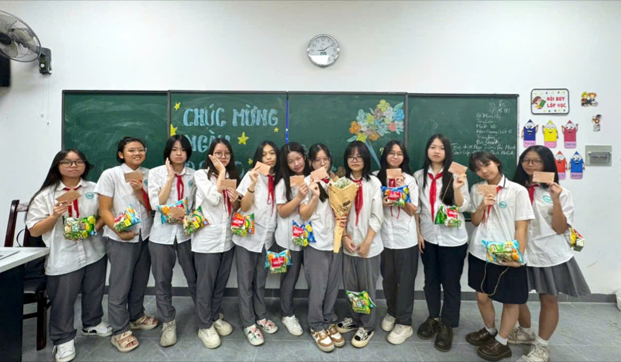 Không chỉ vậy, các bạn nam 9A4 còn bí mật chuẩn bị những món quà dễ thương dành cho bạn nữ: những lá thư tay nắn nót, túi bim bim, hộp sữa, bánh kẹo… nhỏ bé nhưng chứa đựng thật nhiều tình cảm. Không khí lớp học trở nên rộn ràng, tươi vui khi những món quà bất ngờ được trao tận tay. Nhiều bạn nữ xúc động chia sẻ đây là “món quà đáng yêu nhất năm học này”.