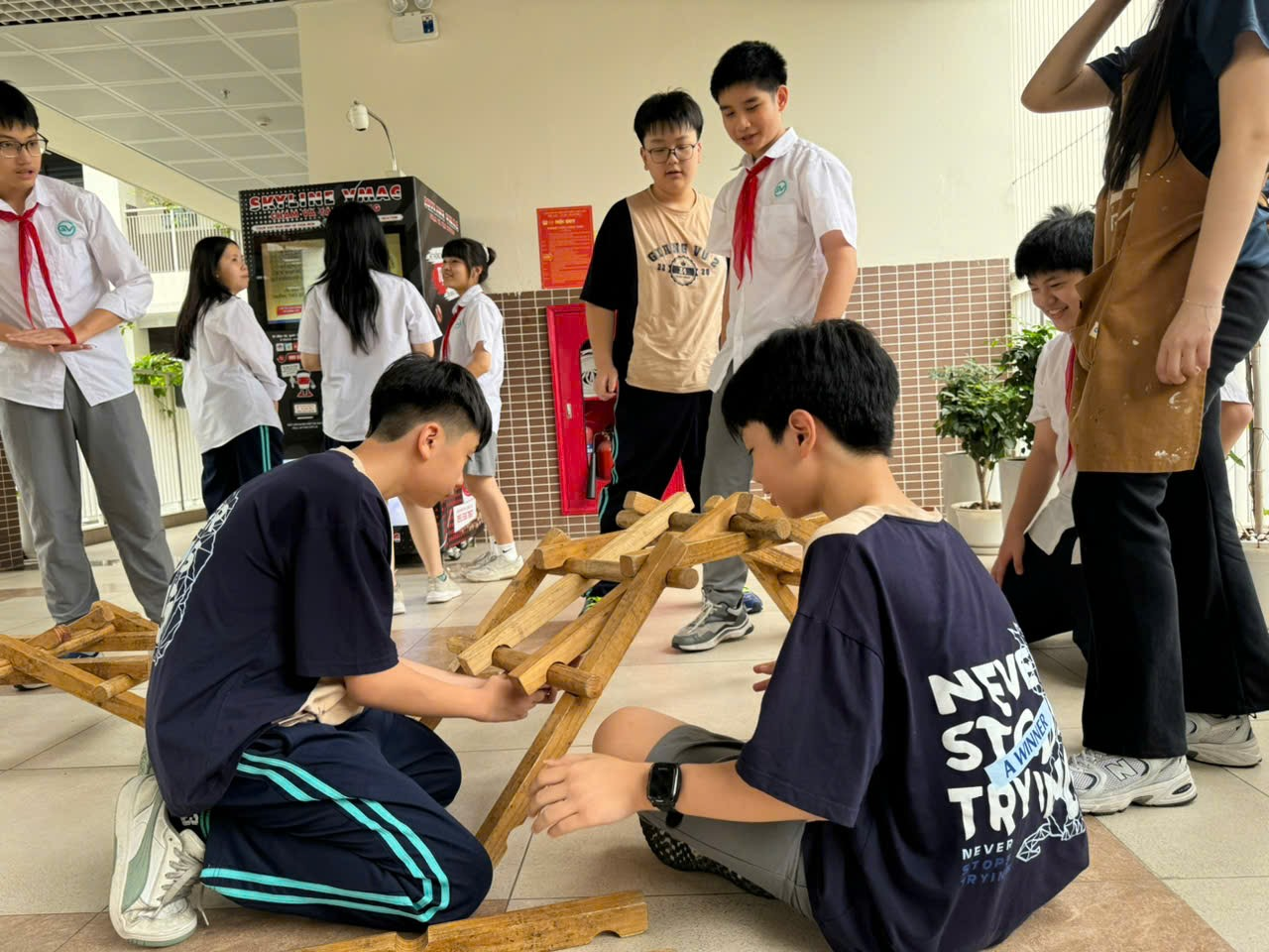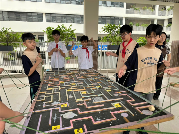 Sự kiện được tổ chức khoa học và sáng tạo từ ý tưởng đến cách làm. Trong điều kiện còn nhiều hạn chế về không gian, nhà trường đã phân chia học sinh theo ca, xoay trạm trải nghiệm thông minh giữa các khu vực Amazing Race, Robot Sáng tạo, Nghiên cứu khoa học, và các trạm thử thách STEM (lắp ghép mô hình, bảo mật thư, xếp hình logic...). Các sảnh tầng, hành lang, phòng hội đồng được tận dụng linh hoạt, vừa đảm bảo an toàn, vừa tạo không gian học tập mở. Mỗi khối lớp 6, 7, 8 được bố trí luân phiên trải nghiệm trọn vẹn sáu nội dung trong khung giờ quy định, dưới sự hướng dẫn tận tình của giáo viên bộ môn và chi đoàn giáo viên hỗ trợ.