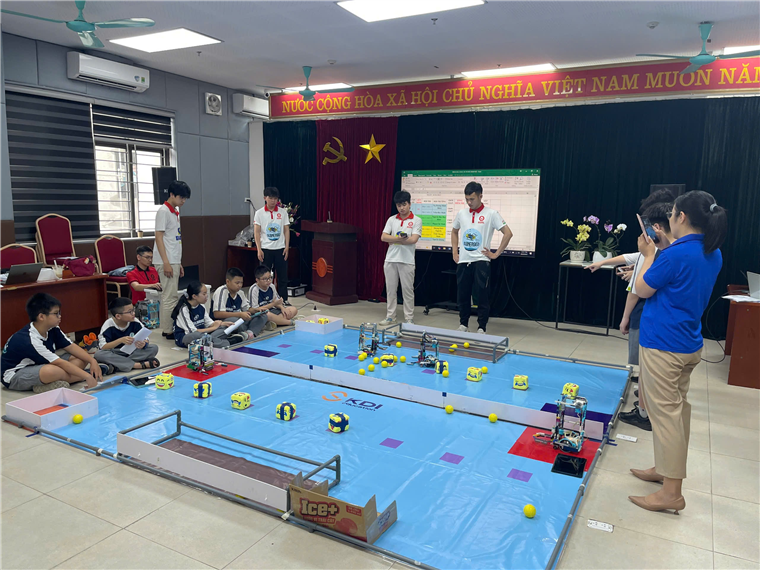 Một điểm nhấn sáng tạo của Ngày hội STEM năm nay là sự kiện "Ocean Robotics Challenge – Bảo vệ môi trường biển", lấy cảm hứng từ sân chơi quốc tế. Các đội thi được giao nhiệm vụ: lập trình và điều khiển robot thu gom rác thải biển, cứu hộ sinh vật biển mô phỏng trên sa bàn thi đấu thực tế. Robot của học sinh phải hoạt động tự động trong 30 giây đầu tiên, sau đó được điều khiển thủ công để hoàn thành nhiệm vụ – đòi hỏi kết hợp kỹ năng lập trình, sáng tạo kỹ thuật và chiến lược nhóm. Cuộc thi không chỉ giúp học sinh phát triển kỹ năng STEM (Khoa học, Công nghệ, Kỹ thuật, Toán học) mà còn nâng cao ý thức trách nhiệm với môi trường, thông qua các chủ đề thời sự như biến đổi khí hậu, ô nhiễm đại dương. Học sinh Trần Minh Quân lớp 7A1 chia sẻ: "Con cảm thấy rất ý nghĩa vì lần đầu tiên được tự thiết kế robot để giải quyết một vấn đề thực tế như bảo vệ biển cả. Con thấy mình thật sự góp phần vào việc bảo vệ môi trường.”