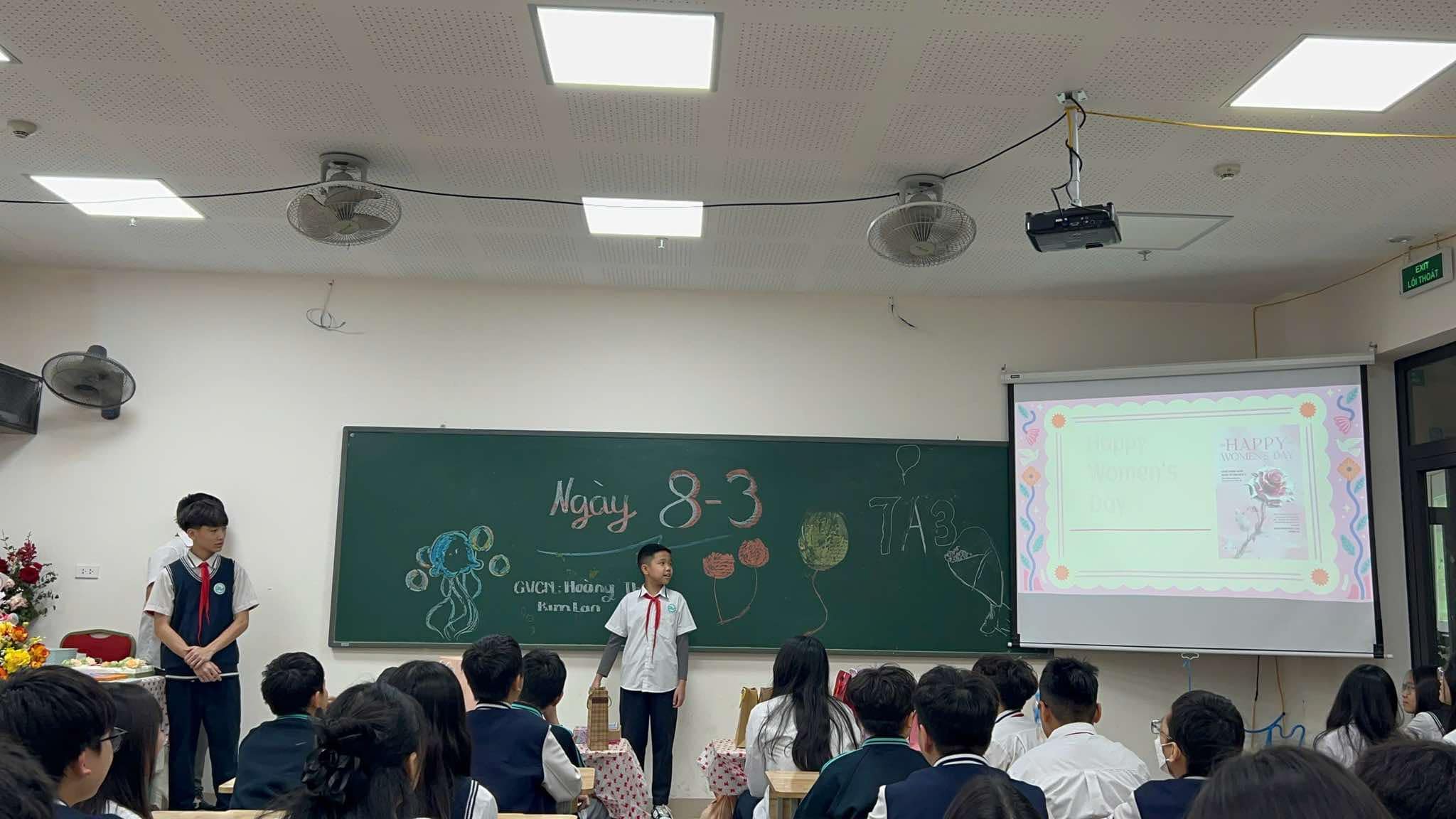 Bạn Lâm Phúc đại diện cho các bạn nam 7A3 gửi lời chúc tới cô giáo chủ nhiệm và các bạn nữ