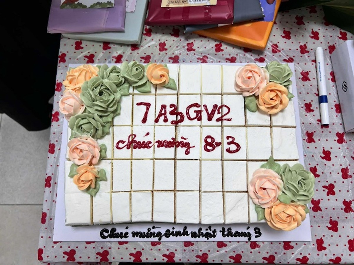 Bất ngờ hơn nữa, cô giáo chủ nhiệm Hoàng Thị Kim Lan đã chuẩn bị một chiếc bánh sinh nhật thật đẹp và những món quà nhỏ dành tặng các bạn có sinh nhật trong tháng Ba. Cử chỉ quan tâm này càng làm cho buổi liên hoan thêm ấm áp và đáng nhớ.