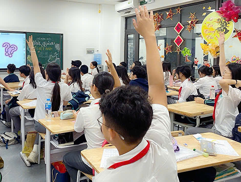 Hình ảnh các bạn hăng hái xung phong trả lời câu hỏi đố vui
