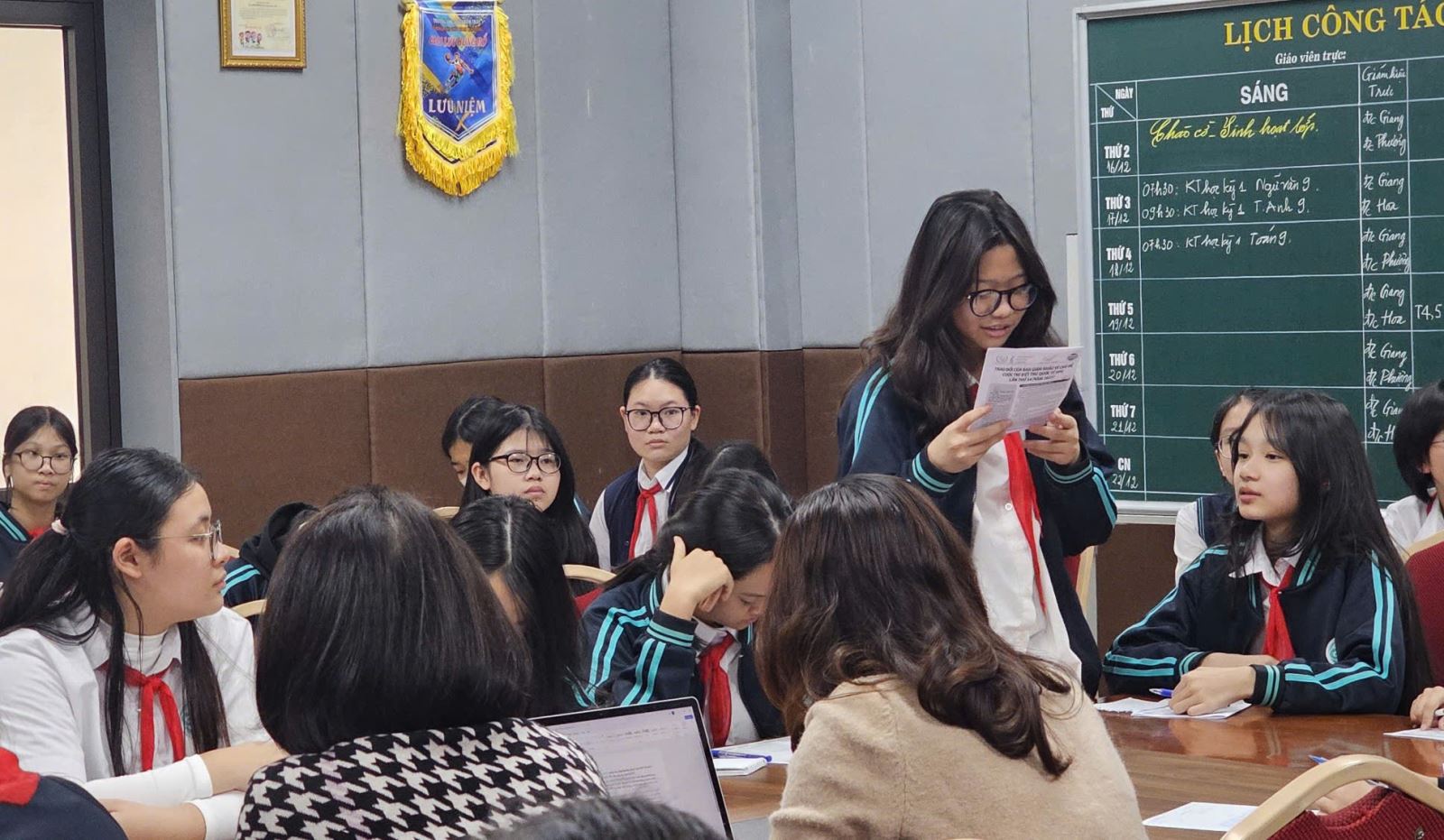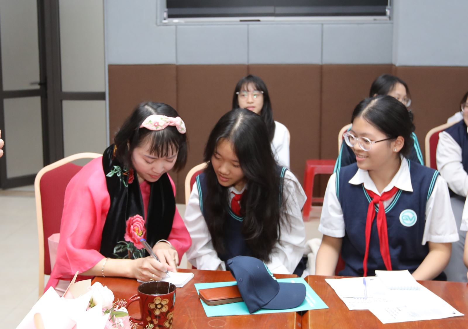 CLB Rubic 9A7 chia sẻ thêm về những ý tưởng của mình với nhà thơ Bảo Ngọc