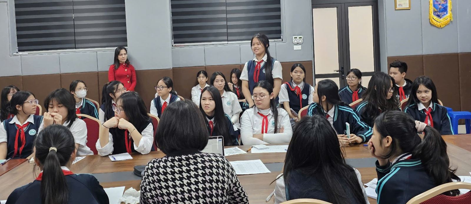 Không khí buổi giao lưu thật sôi nổi khi nhiều bạn mạnh dạn chia sẻ ý tưởng. Những ý tưởng độc đáo từ các bạn khiến cả hội trường thích thú, và thật hạnh phúc khi cô Bảo Ngọc luôn lắng nghe, động viên và ghi nhận từng đóng góp của chúng em.