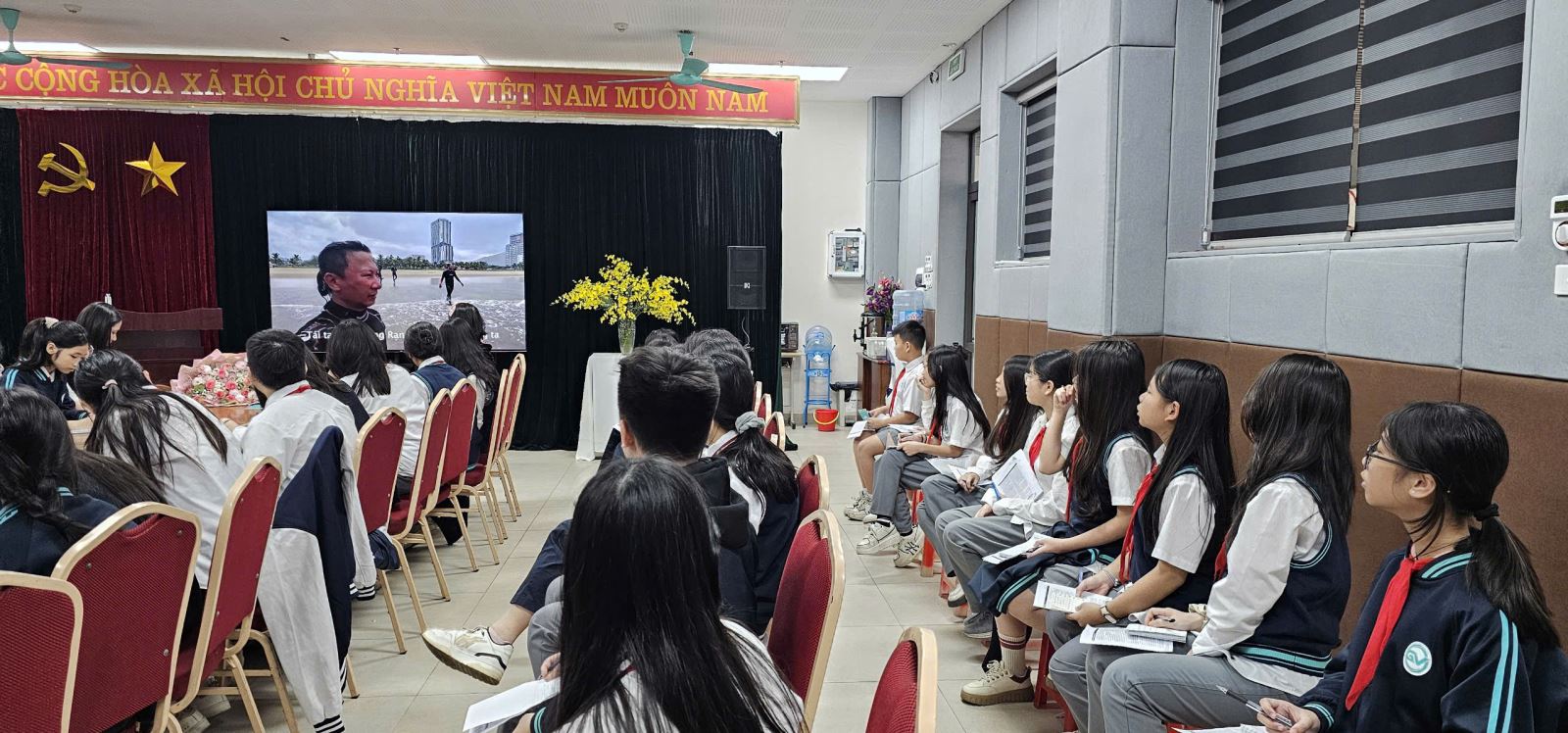 Điểm nhấn đặc biệt của buổi phát động là sự hiện diện của nhà thơ Bảo Ngọc - Phó Chủ tịch Hội đồng Văn học Thiếu nhi, Hội Nhà văn Việt Nam. Được gặp gỡ và lắng nghe chia sẻ từ cô là niềm vinh dự lớn lao đối với chúng em. Cô Bảo Ngọc đã mang đến một không gian cảm xúc tràn đầy, giúp chúng em hiểu sâu sắc về chủ đề của cuộc thi năm nay: "Tưởng tượng bạn là đại dương. Hãy viết một lá thư cho ai đó, giải thích lý do và cách họ nên làm để chăm sóc, bảo vệ bạn thật tốt."
