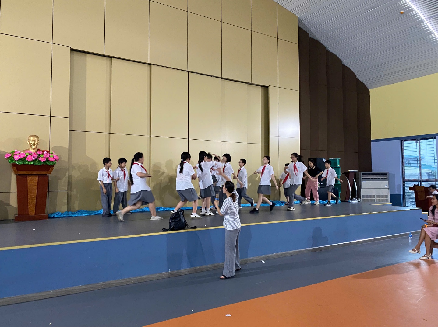 “Nhiều lúc mệt lắm, tập mãi vẫn chưa đều, nhưng nghĩ đến việc được đứng trên sân khấu tặng thầy cô là tụi em lại có thêm năng lượng,”– một bạn học sinh lớp 6A3 chia sẻ.