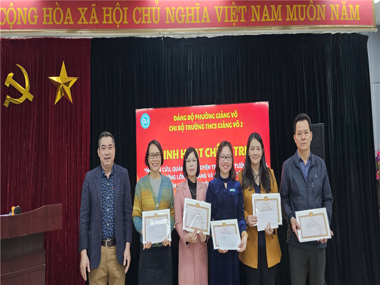 Khép lại buổi sinh hoạt chính trị, đồng chí Chu Xuân Thịnh đã trao tặng giấy khen khen thưởng các Đảng viên xuất sắc năm 2024 của Chi bộ trường THCS Giảng Võ 2.