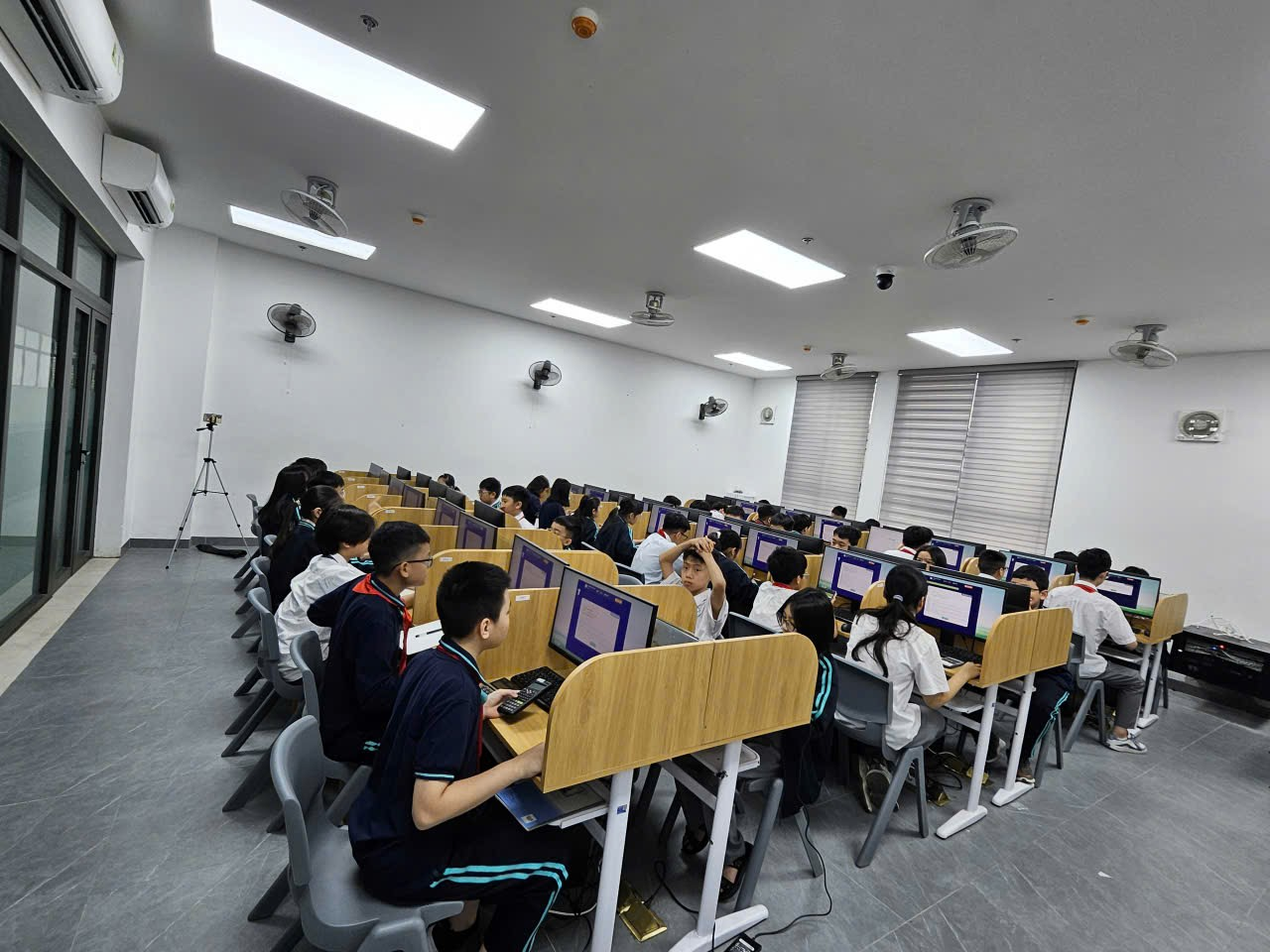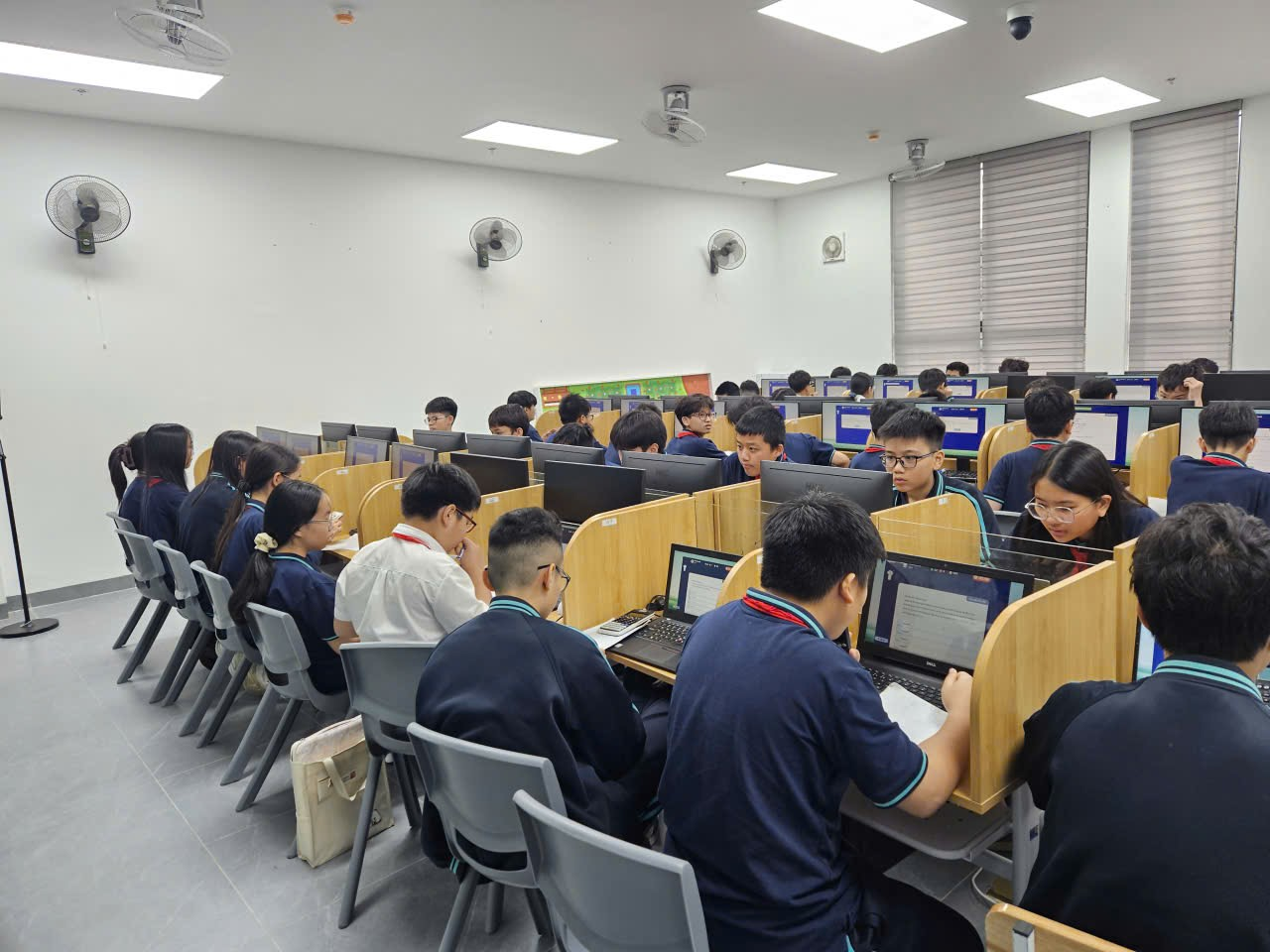 Kỳ thi được tổ chức trên hệ thống trực tuyến VioEdu theo đúng kế hoạch, dưới sự giám sát chặt chẽ của Ban coi thi. Đội ngũ giáo viên và cán bộ kỹ thuật luôn túc trực, kịp thời hỗ trợ học sinh trong quá trình đăng nhập và xử lý các tình huống phát sinh, góp phần giúp buổi thi diễn ra an toàn, nghiêm túc và hiệu quả.