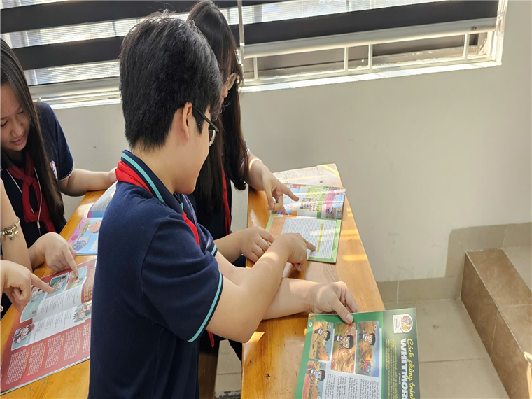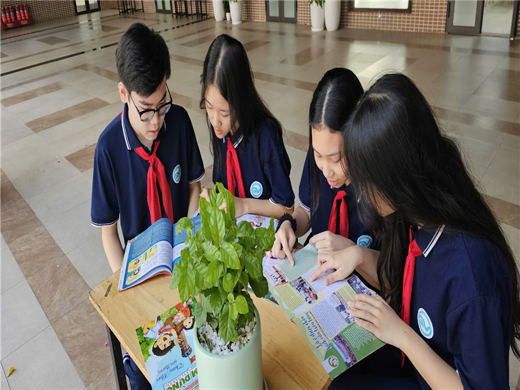 Học sinh sôi nổi trao đổi những kiến thức thú vị trong báo Đội