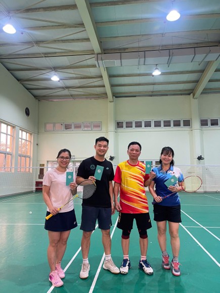 Không chỉ các em học sinh, các thầy cô giáo cũng thể hiện tinh thần thể thao sôi nổi với những trận cầu lông quyết liệt.