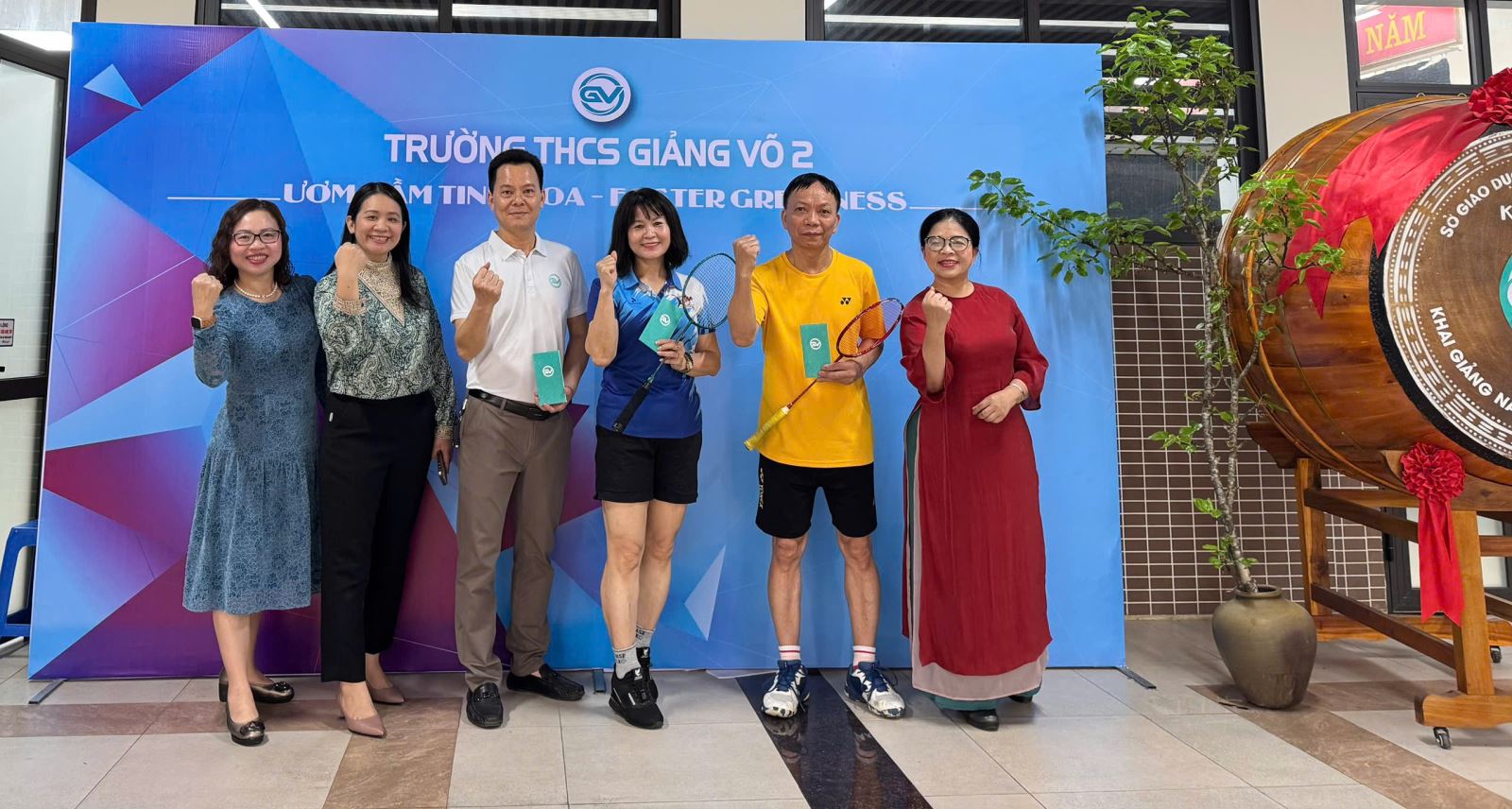 Kỷ niệm 79 năm Ngày Thể thao Việt Nam (27/3/1946 – 27/3/2025), Ban giám hiệu trường THCS Giảng Võ 2 đã tặng quà chúc mừng thầy Nguyễn Đức Chính và thầy Phùng Hải Sơn – những thầy giáo dạy môn Giáo dục thể chất, thầm lặng góp phần nâng cao sức khỏe thể chất cho học sinh - cùng các thầy cô của nhà trường chuẩn bị tham gia thi đấu thể thao cấp Thành phố .