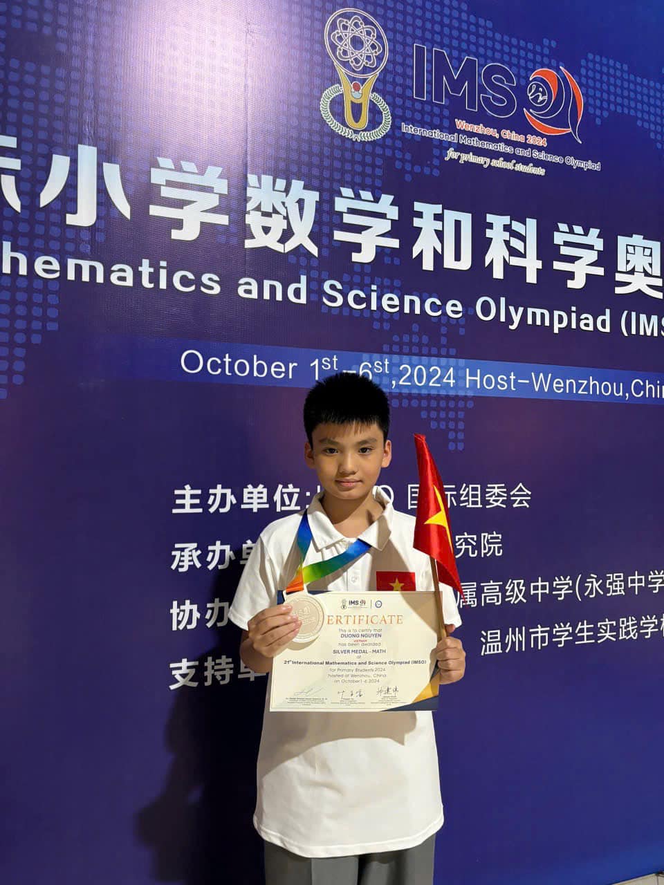 Để tạo nên một tập thể xuất sắc thì không thể thiếu những cá nhân xuất sắc. Đầu tiên phải kể đến Dương Nguyễn – cậu bé IMSO. Bạn đã vượt qua nhiều đối thủ để giành được tấm Huy chương Bạc trong kỳ thi Olympic Toán và Khoa học quốc tế IMSO 2024 vừa diễn ra từ ngày 01/10 đến ngày 06/10 tại thành phố Ôn Châu, tỉnh Triết Giang (Trung Quốc).