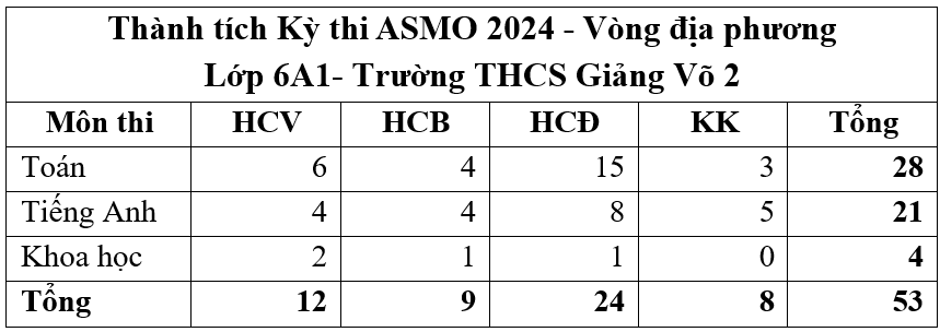 Bảng thành tích đáng tự hào của các học sinh lớp 6A1