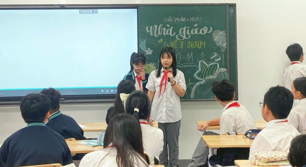 Mở đầu chương trình, hai bạn MC Lâm Anh và Bảo Châu đã phối hợp đầy ăn ý, dẫn dắt cả lớp bước vào không khí sôi nổi và hào hứng. Nhờ cách dẫn tự tin và dí dỏm của hai bạn, bầu không khí nhanh chóng trở nên ấm áp và tràn đầy năng lượng. Trong phần mở đầu này, các bạn còn được lắng nghe những thông tin thú vị xoay quanh ngày Quốc tế Nam giới, hiểu thêm về ý nghĩa của ngày lễ đặc biệt nhằm tôn vinh phái mạnh và ghi nhận những đóng góp thầm lặng của họ trong cuộc sống.