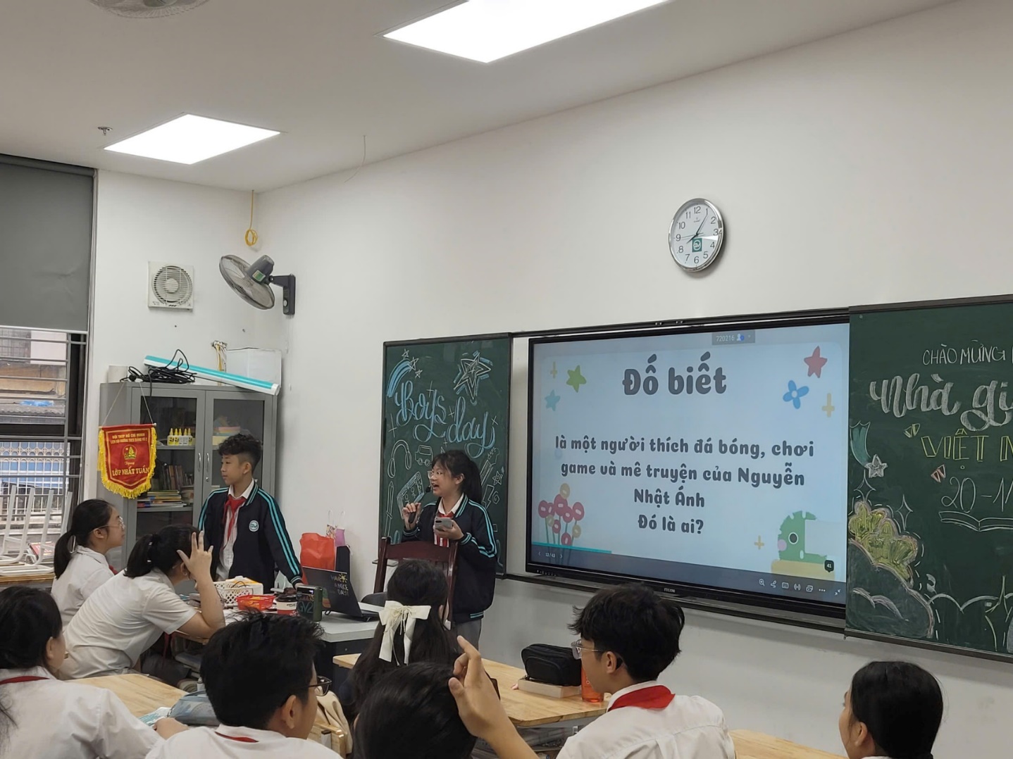 Ngay sau phần mở đầu, cả lớp bước vào một trò chơi thú vị đã được chuẩn bị từ trước. Trong trò chơi này, các bạn sẽ dựa vào những gợi ý về tính cách, ngoại hình hoặc thói quen đặc trưng để đoán xem nhân vật bí ẩn là ai. Những tiếng cười bật lên khi có người đoán đúng ngay từ gợi ý đầu tiên, và cả những tiếng reo hò đầy phấn khích khi đáp án được tiết lộ. Trò chơi không chỉ mang lại niềm vui mà còn khiến bầu không khí của lớp trở nên hân hoan, gắn kết và rộn ràng hơn bao giờ hết.