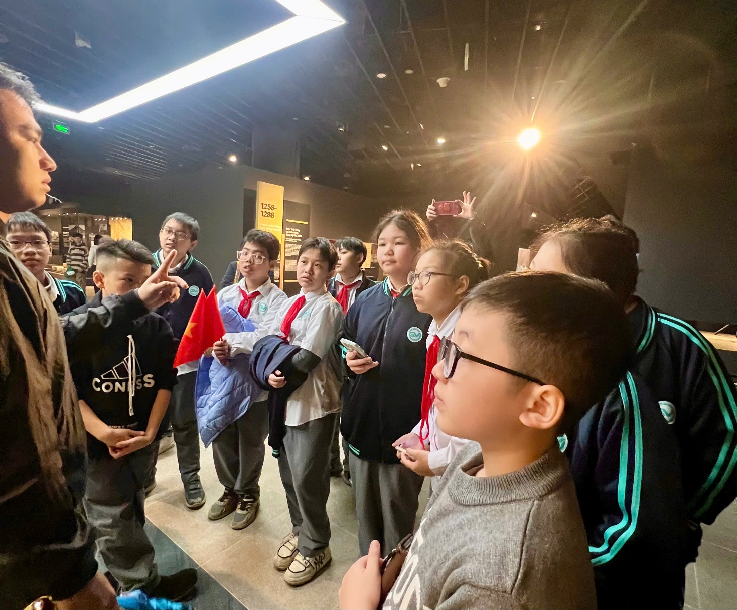 Buổi tham quan còn có sự tham gia của thầy giáo chủ nhiệm Lê Anh Tuấn và cô Thanh Vân - giáo viên dạy môn Lịch sử - Địa lý. Thầy cô không chỉ là những người hướng dẫn, mà còn tạo động lực để chúng em tự tin hơn khi tìm hiểu các chủ đề. Bên cạnh đó, các bác trong Ban phụ huynh cũng đồng hành cùng chúng em trong suốt buổi tham quan. Bác Sao – Trưởng ban PHHS chia sẻ: “Bác rất vui khi thấy các con thích thú và hào hứng trong suốt chuyến đi. Bác hy vọng rằng những bài học từ buổi tham quan này sẽ theo các con suốt hành trình học tập và trưởng thành sau này”.