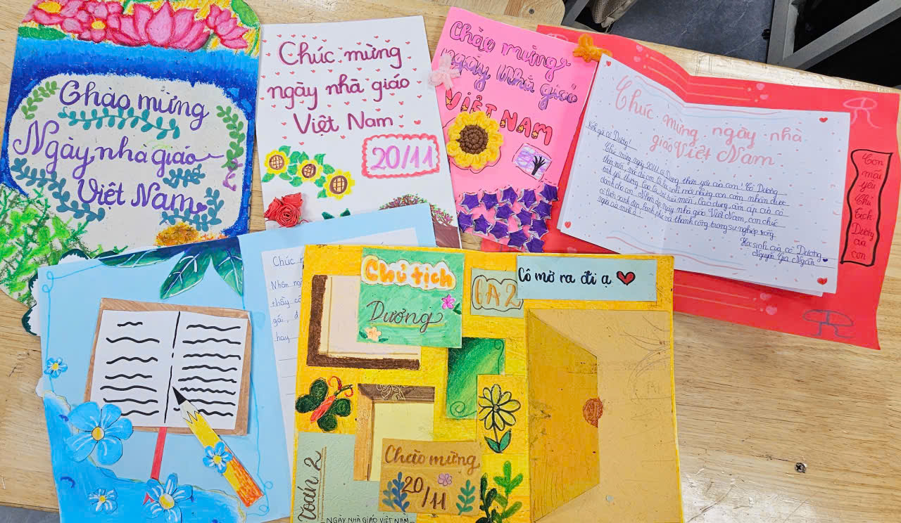 Học sinh lớp 6A2 tự tay làm thiệp chúc mừng Ngày Nhà giáo Việt Nam