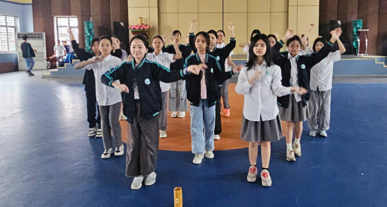 Các bạn lớp 6A2 tập luyện hăng say và nghiêm túc để chuẩn bị cho hội diễn văn nghệ.
