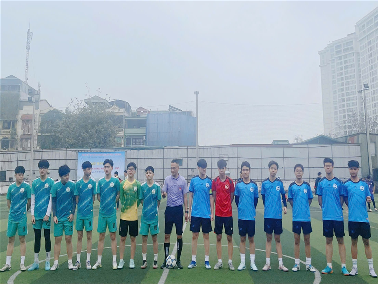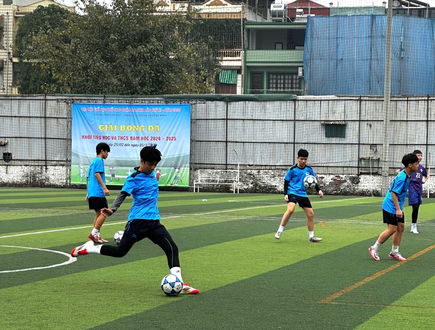 Đội bóng THCS Giảng Võ 2 (áo màu xanh dương) có chiến thắng ngoạn mục trước đội bóng THCS Nguyễn Tri Phương