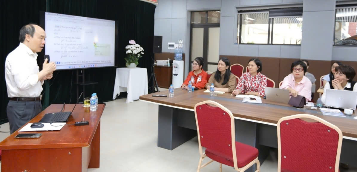 Giáo sư, Tiến sĩ khoa học Đỗ Đức Thái - Tổng chủ biên chương trình GDPT 2018 môn Toán, Tổng chủ biên SGK môn Toán, bộ sách Cánh Diều sinh hoạt chuyên môn cùng nhóm Toán với chủ đề: “Những đổi mới của chương trình GDPT 2018 – Cách thiết kế các bài khó dạy trong chương trình Toán lớp 9”
