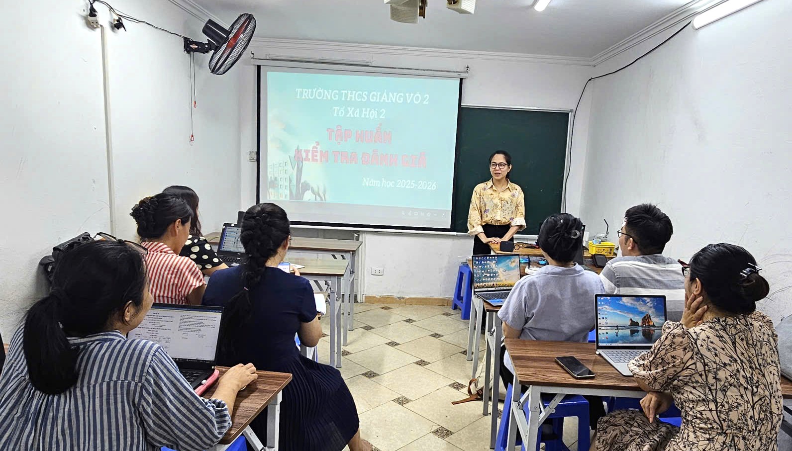 Song song với chương trình tập huấn tại cụm phường Giảng Võ, giáo viên Tổ Xã hội 2 còn tham dự tập huấn do Nhà xuất bản Giáo dục Việt Nam tổ chức, với trọng tâm là đổi mới phương pháp kiểm tra, đánh giá. Buổi tập huấn đã đem đến nhiều gợi mở về việc vận dụng công nghệ trong xây dựng ngân hàng đề thi, đổi mới hình thức đánh giá thường xuyên – định kỳ, chú trọng hơn tới đánh giá quá trình thay vì chỉ dựa trên kết quả cuối cùng.