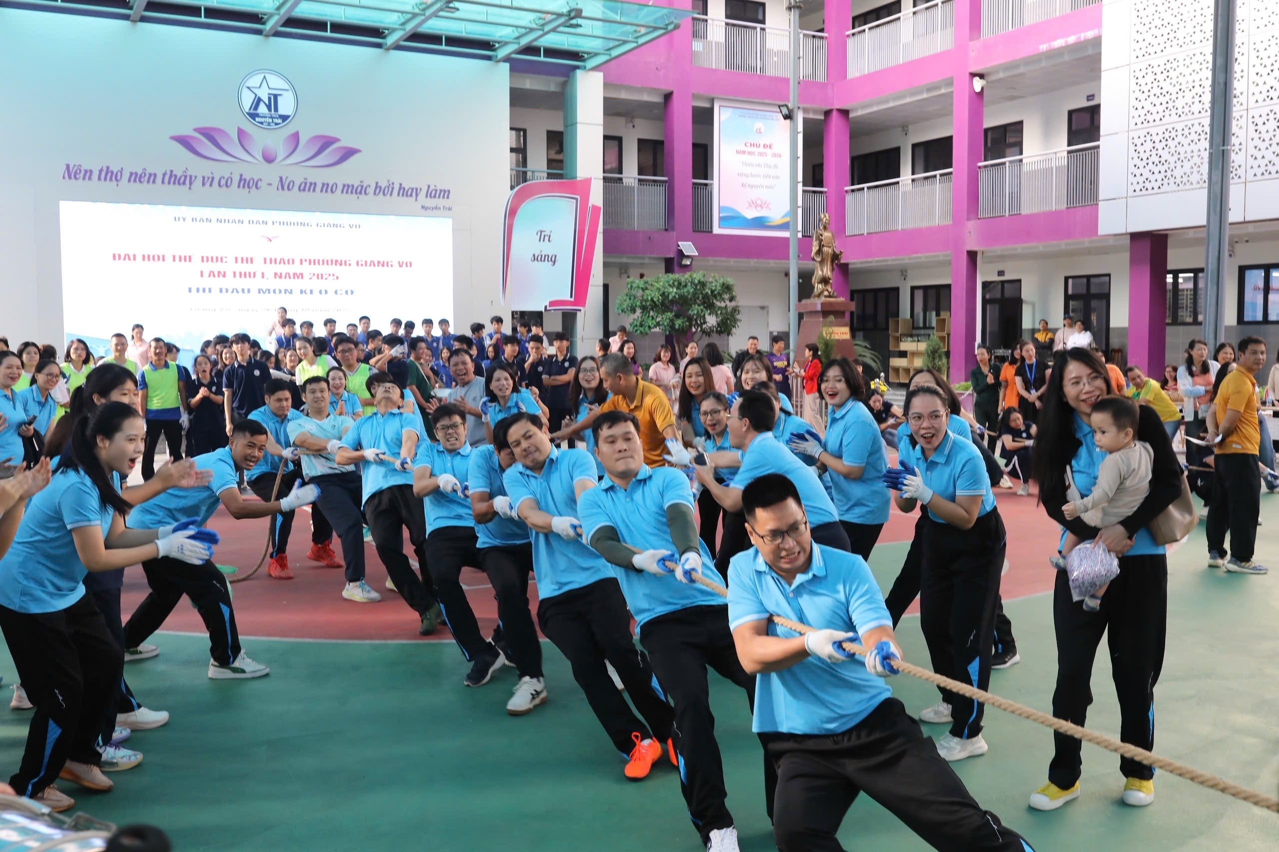 Với sự nỗ lực không ngừng, đội ngũ cán bộ, giáo viên, nhân viên của nhà trường đã xuất sắc giành Huy chương Vàng nội dung kéo co nam – do nhóm Giáo dục thể chất phụ trách – minh chứng cho tinh thần đồng lòng và sức mạnh tập thể của thầy cô Giảng Võ 2.