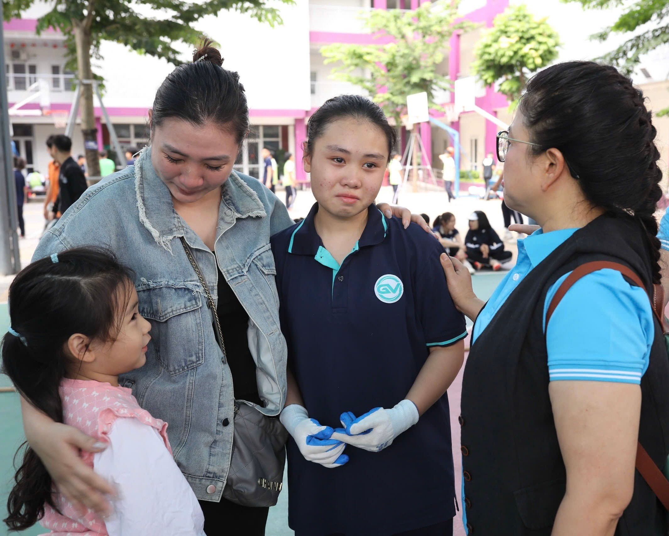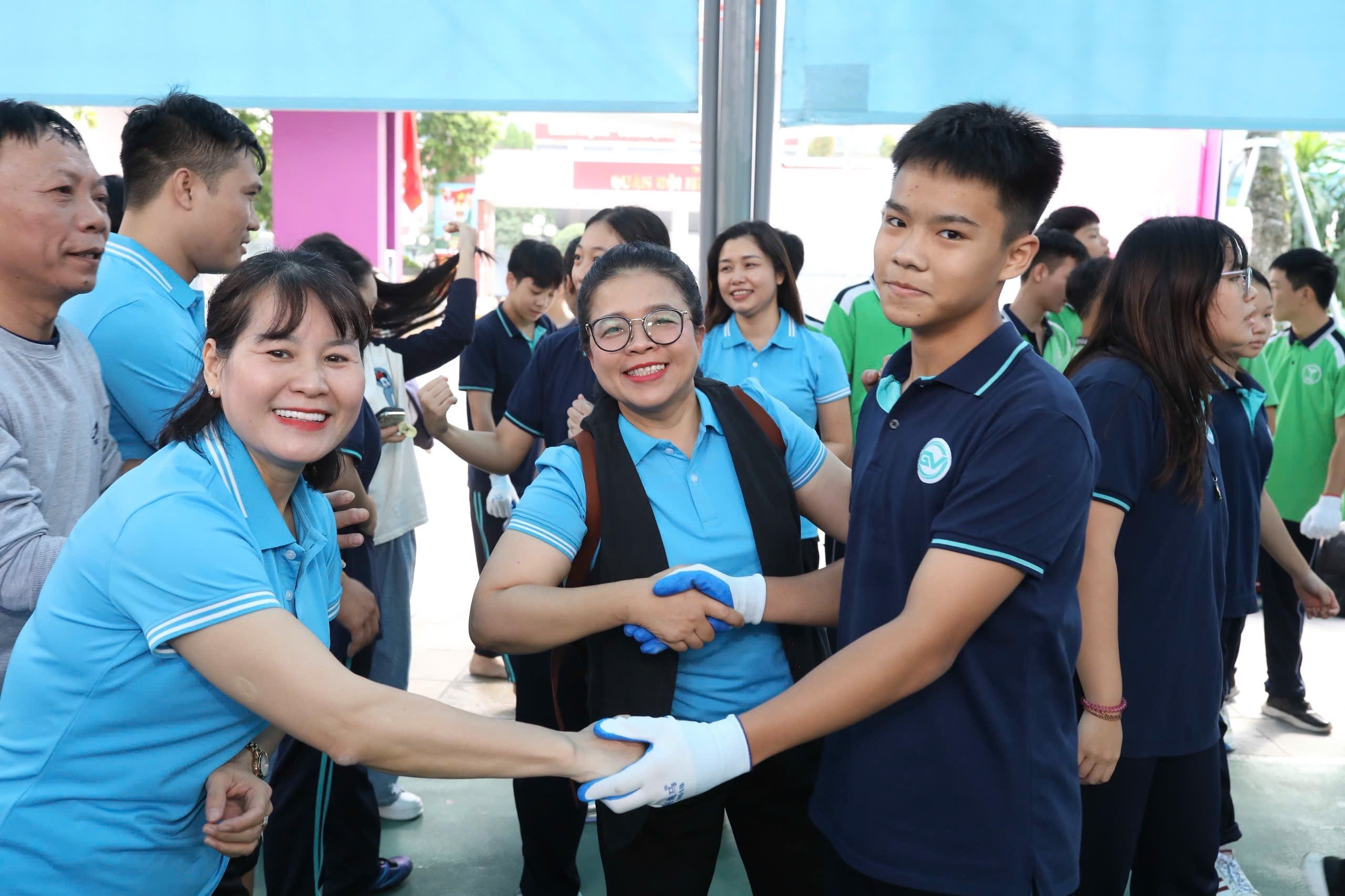 Niềm vui chiến thắng rạng rỡ trên gương mặt các thầy cô và học sinh nhà trường