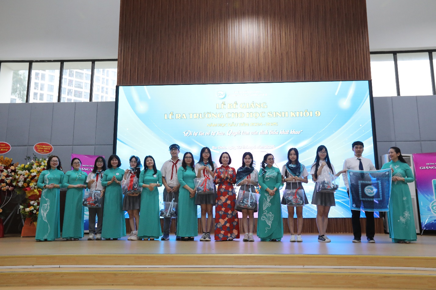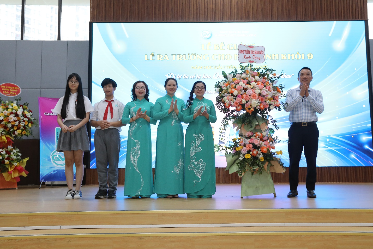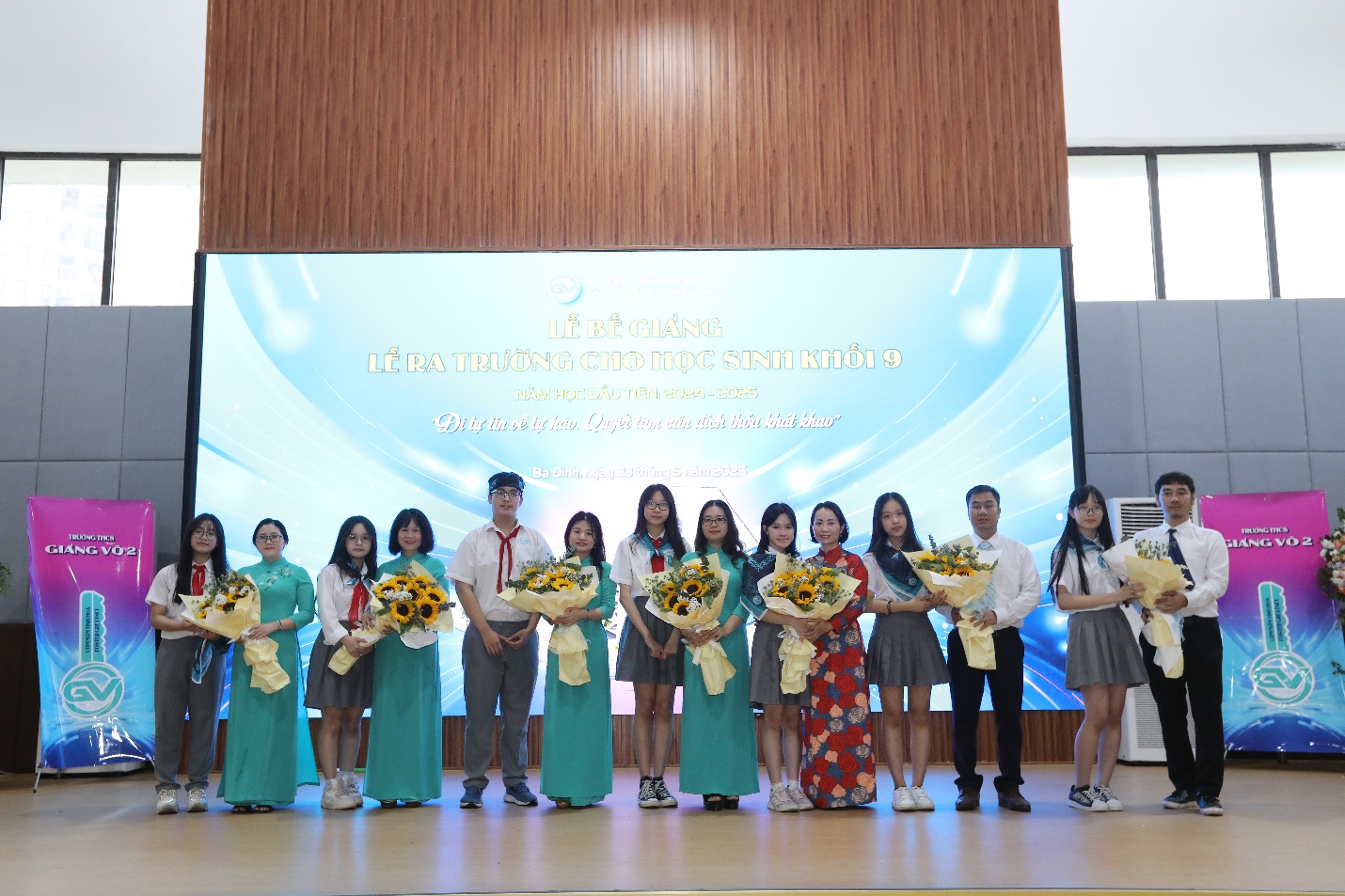 Các em học sinh lớp 9 đã trưởng thành ở Giảng Võ 2, không hề đơn độc mà luôn nhận được yêu thương từ cha mẹ, thầy cô, và mái trường. Chiếc khăn trao tay hôm nay là lời chúc, là sự tin tưởng vào hành trình phía trước và là niềm hy vọng một ngày không xa, các em sẽ trở về trong vòng tay của ngôi trường đang lớn lên từng ngày.