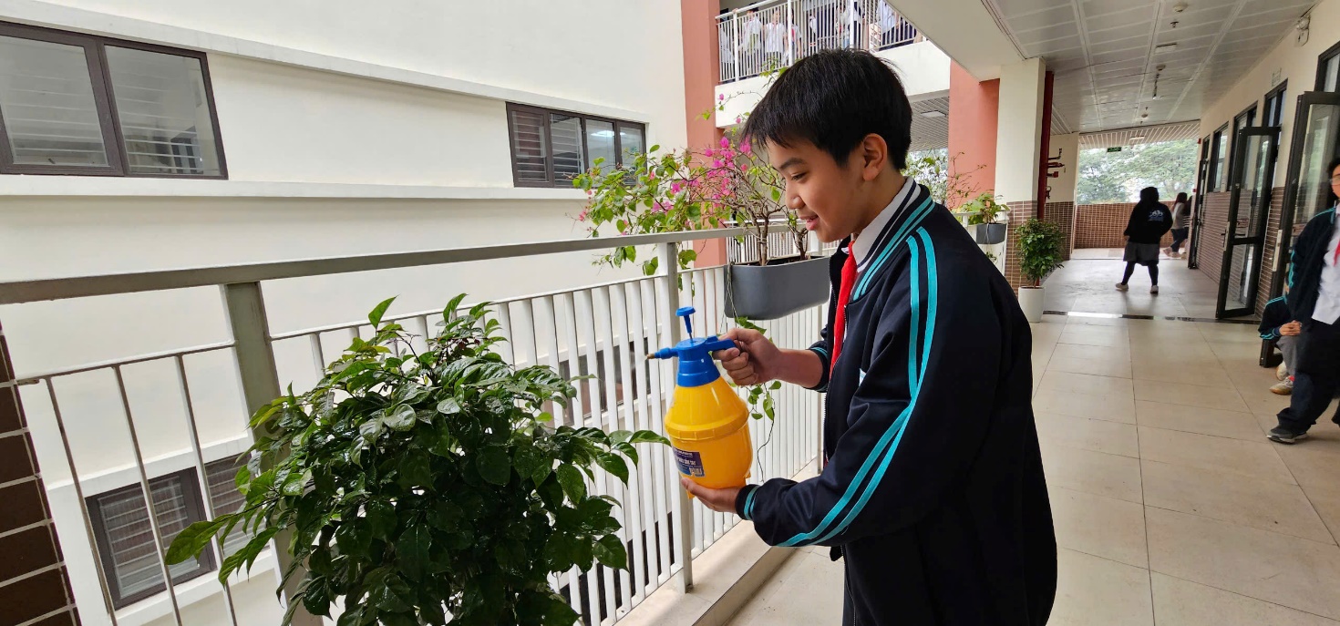 Các em học sinh chăm sóc cây hạnh phúc với niềm vui tràn đầy