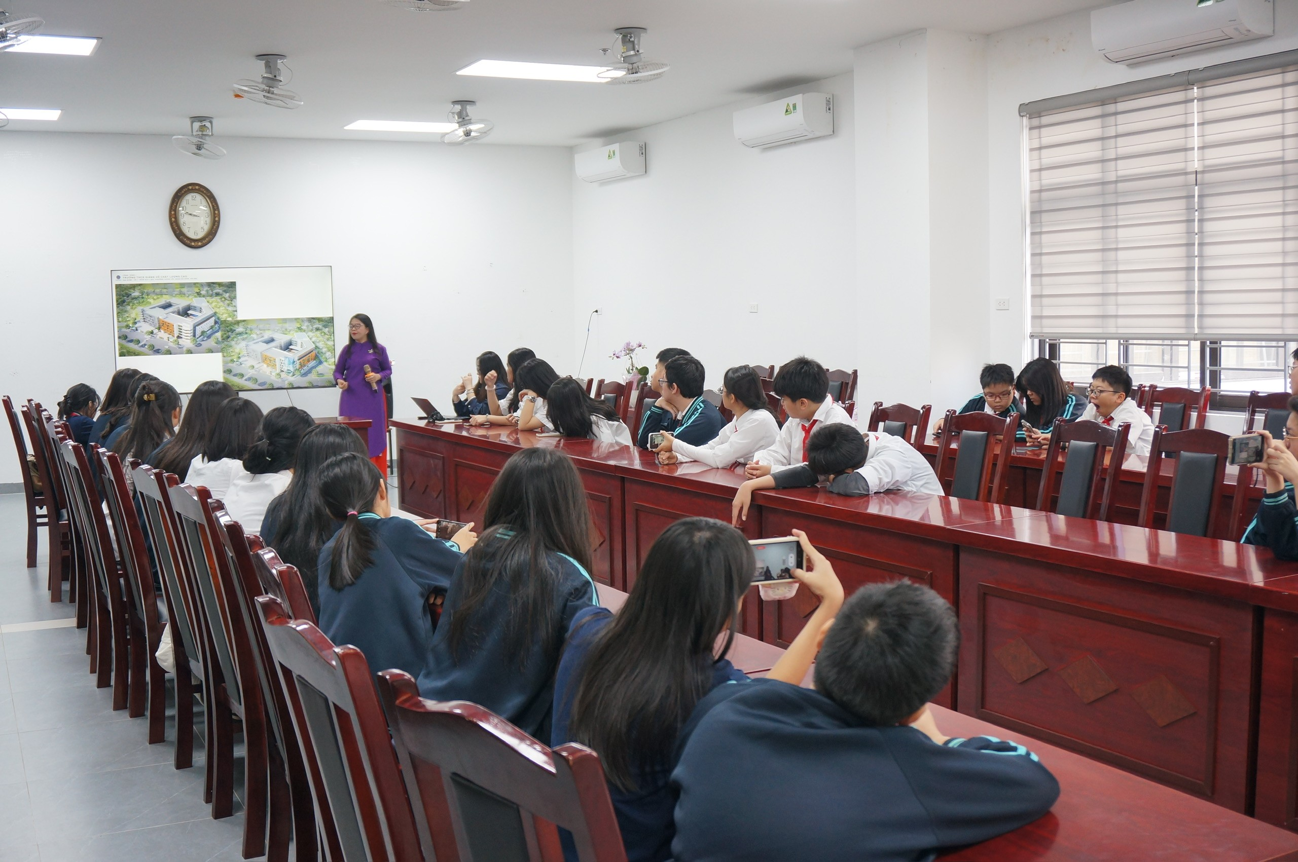 Trong tiết trời se lạnh đầu đông, mùi sơn mới thoảng trong gió khiến ngôi trường như đang thở nhịp sống mới. Cô Giang giới thiệu về các khối nhà, tầm nhìn hướng hồ Giảng Võ cùng mô hình phòng học thông minh, thư viện mở tràn ánh sáng và các không gian sinh hoạt chung rộng rãi. Cô nhắc đến hình ảnh khối “kim cương” trong kiến trúc – biểu tượng cho mục tiêu “mài ngọc, luyện kim cương” mà nhà trường gửi gắm đến mỗi học sinh. Qua lời cô, chúng em cảm nhận rõ tâm huyết của thầy cô và tin tưởng rằng mình sẽ có nhiều cơ hội phát triển tại ngôi trường này.