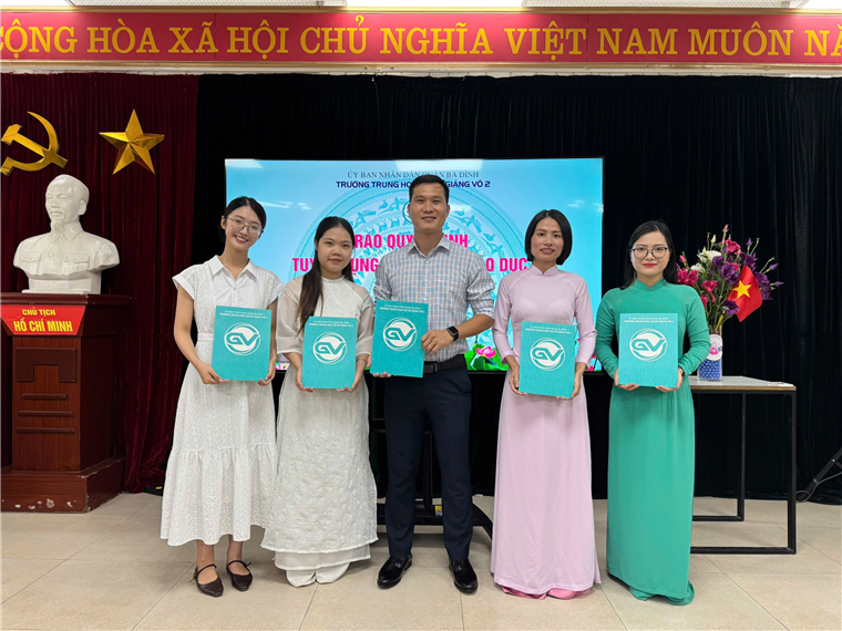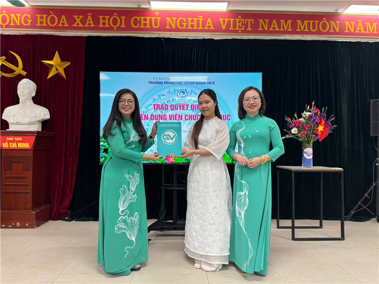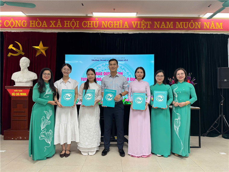 Sáng ngày 1/7/2025, Trường THCS Giảng Võ 2 long trọng tổ chức lễ trao quyết định tuyển dụng viên chức giáo dục tới các thầy cô giáo vừa trúng tuyển. Sự kiện đánh dấu cột mốc ý nghĩa, mở ra hành trình mới trong sự nghiệp của mỗi cá nhân và là bước tiến quan trọng trong chiến lược phát triển đội ngũ của nhà trường.