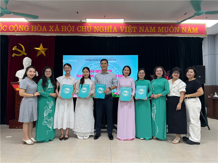 Chào mừng các thầy cô – “những mảnh ghép đa sắc” – đã chính thức trở thành thành viên của mái nhà Giảng Võ 2. Chúc các đồng chí tân viên chức luôn giữ vững tinh thần trách nhiệm, không ngừng đổi mới, sáng tạo trong giảng dạy và cùng lan tỏa cảm hứng học tập đến từng học sinh. Đây cũng là khởi đầu thuận lợi cho một năm học mới nhiều kỳ vọng và thành công.