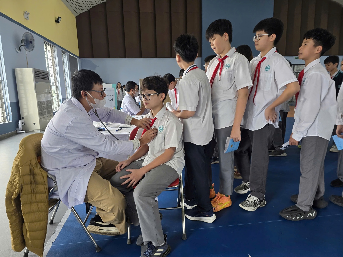 Tính đến khi kết thúc, 1.355 học sinh – chiếm 98,5% toàn trường – đã được khám theo các chuyên khoa: răng hàm mặt, tai mũi họng, mắt, nội khoa và da liễu. Các bác sĩ tiến hành sàng lọc toàn diện, phát hiện một số trường hợp dị ứng thời tiết, dị ứng thực phẩm, viêm da, viêm đại tràng hoặc dạ dày. Những học sinh có dấu hiệu bất thường được tư vấn trực tiếp về chế độ chăm sóc, dinh dưỡng và hướng thăm khám chuyên sâu khi cần.