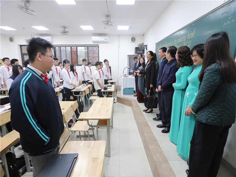Tại buổi làm việc, GS.TS. Gladys Nivera đã trực tiếp dự giờ tiết Toán tại lớp 9A1 do thầy Trịnh Hoài Dương giảng dạy. Sau tiết học, bà bày tỏ ấn tượng sâu sắc với phương pháp giảng dạy của giáo viên cũng như sự chủ động, sáng tạo của học sinh. Bà nhận xét: “Học sinh thể hiện tư duy độc lập, đặt câu hỏi và thảo luận sôi nổi. Điều này cho thấy sự chuẩn bị chu đáo của giáo viên và chất lượng giáo dục tại nhà trường.”