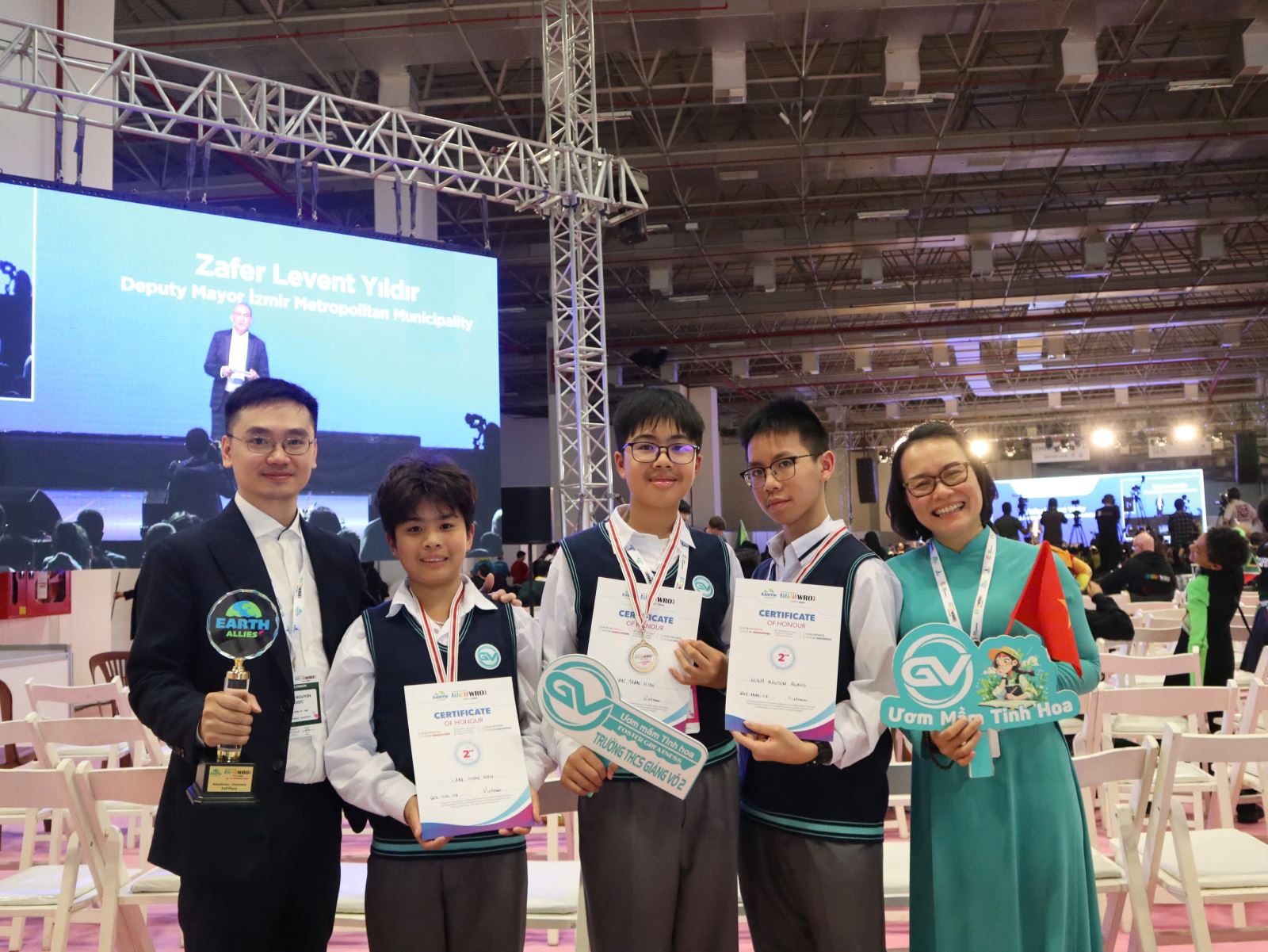 Ban Giám hiệu khen thưởng đội tuyển GV2-HSRL-01- Á quân Thế giới trong cuộc thi WRO 2024