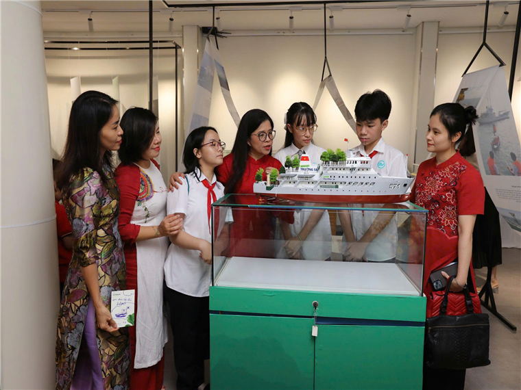 Ngoài ra, học sinh còn hưởng ứng mua quà lưu niệm tại triển lãm để gây quỹ cho chương trình “Vầng trăng của biển”, trao quà Trung thu cho con em cán bộ, chiến sĩ Trường Sa. Những hành động nhỏ nhưng mang ý nghĩa lớn, giúp các em hiểu rằng yêu nước không chỉ thể hiện bằng lời nói mà cần gắn liền với những việc làm thiết thực.